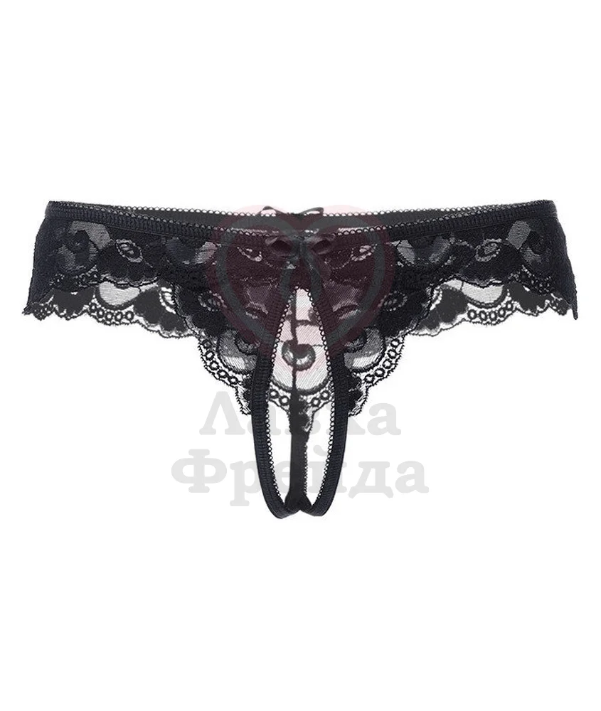 Эротические трусики кружевные, эластичные. Спереди декорированы атласными бантиками. Свободный кружевной край. Допускается замена кружева на аналогичное.