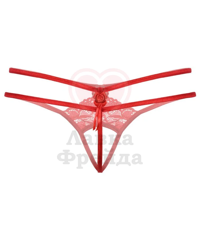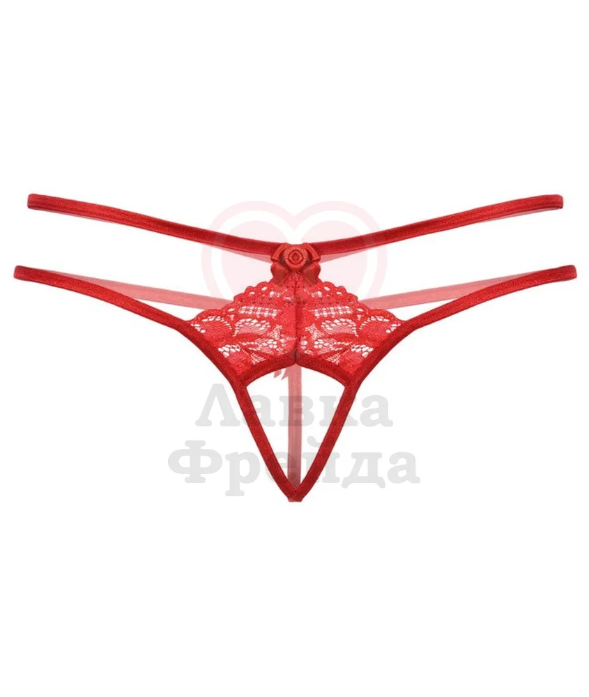 Открытые кружевные трусики с двойной тесьмой позволяют выглядеть ещё более соблазнительно во время прелюдии и занятия любовью. Бельё декорировано маленькими игривыми бантиками и переплетением тесьмы. Подойдёт на параметры: ОБ 86-106.
