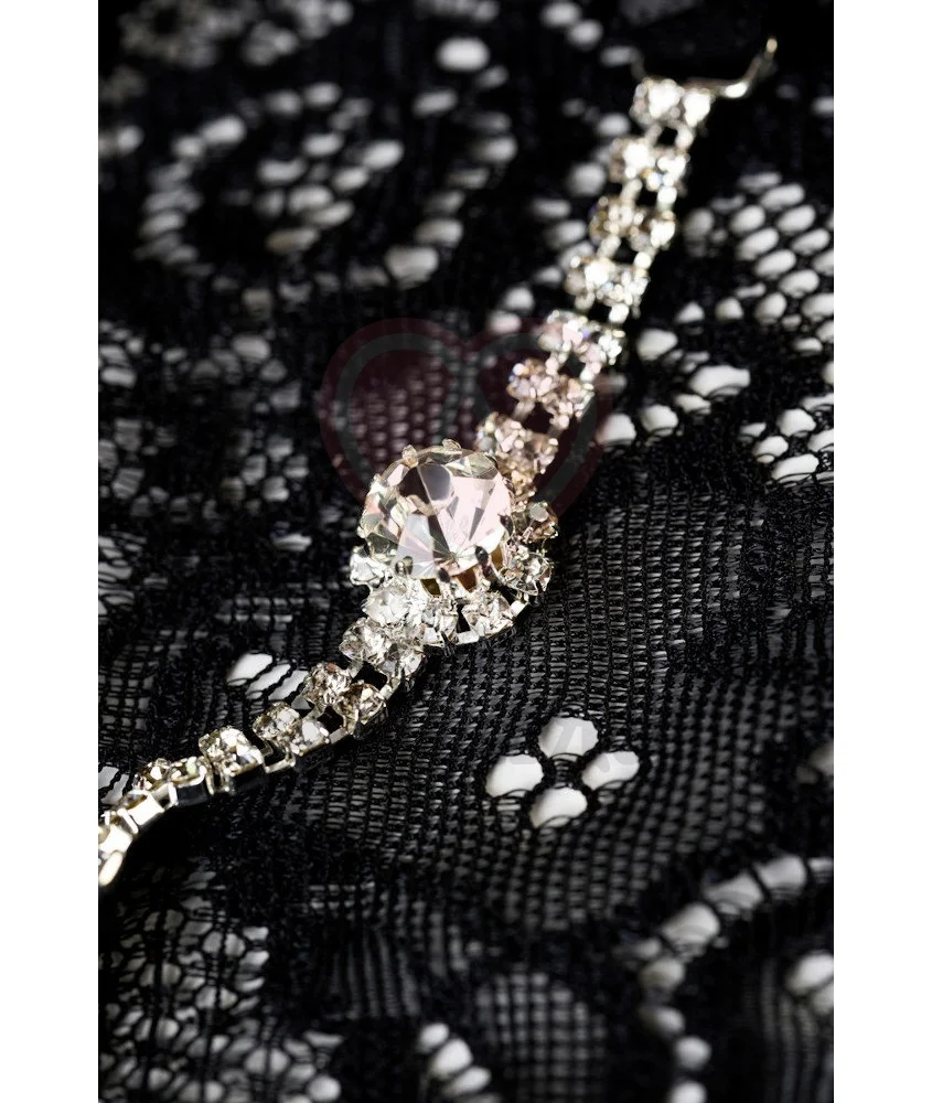 Чёрные трусики из нежного цветочного кружева имеют милые бантики и цепочку страз с круглым кристаллом сбоку, привлекая своим блеском внимание к плавным изгибам тела. Бельё выполнено из лёгкого, эластичного материала, который подходит под разный размер, а хлопковая ластовица внутри обеспечит дополнительный комфорт. Трусики станут отличным дополнением под романтичное платье или как часть кружевного комплекта белья. Параметры модели на фотографии: рост 162 см, объём талии 59 см, объём бедра 86 см