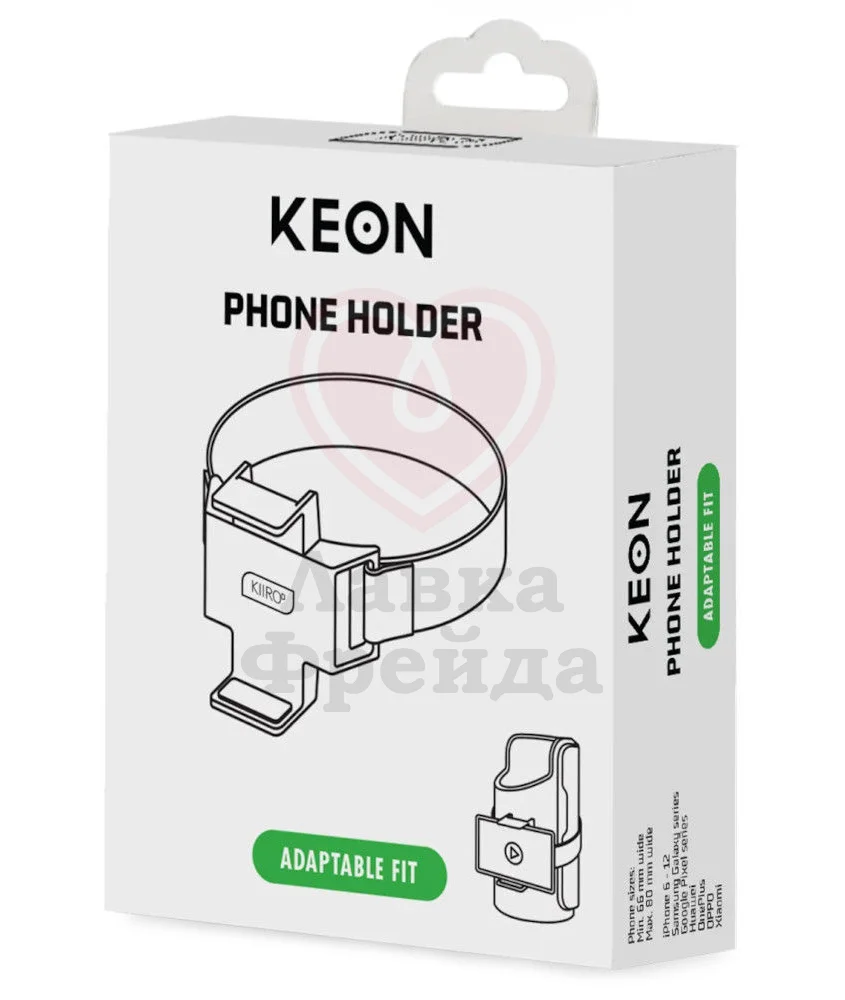 Держатель для телефонов — аксессуар, созданный специально для автоматического и интерактивного мастурбатора Kiiroo Keon. Чтобы наслаждаться интерактивным контентом от приложения FeelConnect, необходим смартфон — а чтобы не держать его в руках воспользуйтесь ремешком с креплением. Резинка обхватывает мастурбатор, и вы можете наблюдать за любыми роликами в процессе активных движений игрушки.
