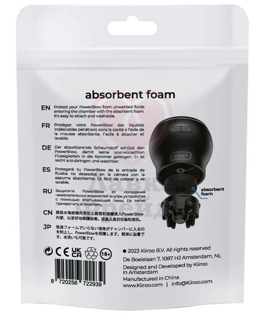 Kiiroo Powerblow Absorbent Foam - набор пористых губок из полиуретановой пены, предназначенных для защиты мастурбатора от попадания влаги внутрь устройства. Защищают не только от воды, но и от других видов жидкостей. В наборе находится пять сменных губок в форме кольца, которые нужно менять по мере необходимости. Насадки упакованы в полностью герметичный дой-пак, имеющий закрывающийся замок-молнию типа "зип-лок" и разрывную насечку.