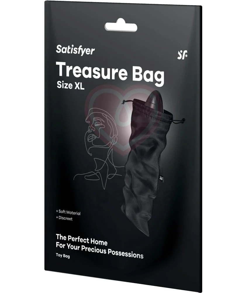 Фирменный мешочек Satisfyer Treasure Bag XL идеально подходит для хранения вибратора и прочих секс-игрушек, также в нем можно хранить наушники, пауэрбанк и другие мелкие ценные вещи. Можно использовать как мобильную косметичку для самого важного, чтобы носить с собой. Аксессуар выполнен из приятного на ощупь, прочного, устойчивого к износу материала, который можно стирать. Мешочек закрывается затягивающимся шнурком, который дает быстрый и комфортный доступ к его содержимому.