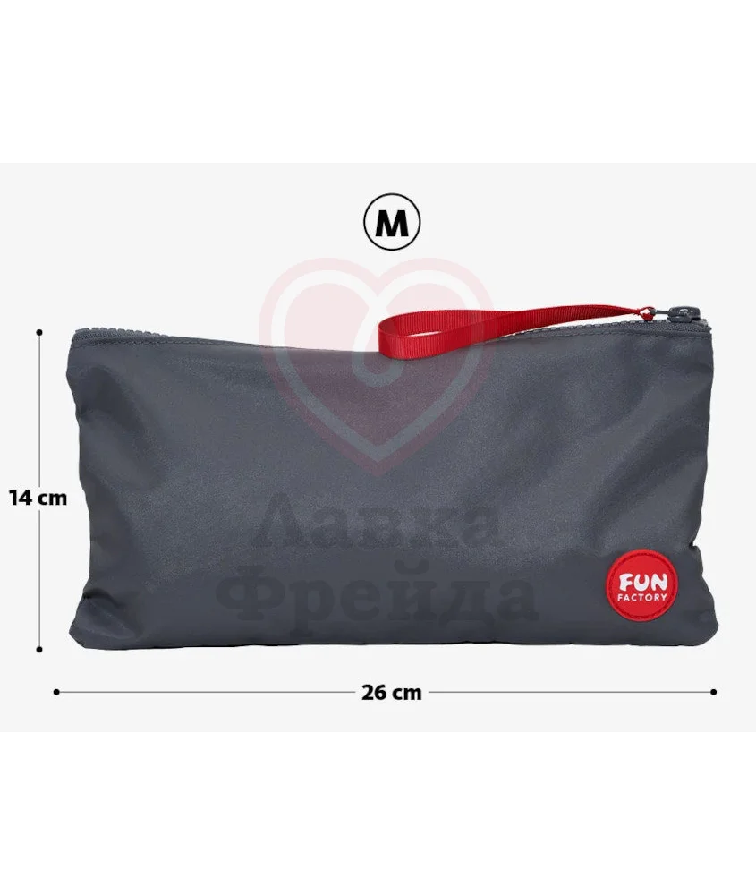 Сумочка Fun Factory Toy Bag подойдет для хранения игрушек — защитит их от пыли, воздействия солнечных лучей и позволит с удобством убирать их в шкаф или брать с собой в путешествия. Сверху расположена молния, а саму сумочку можно легко очищать при необходимости. Размер M - 26 x 14 см.