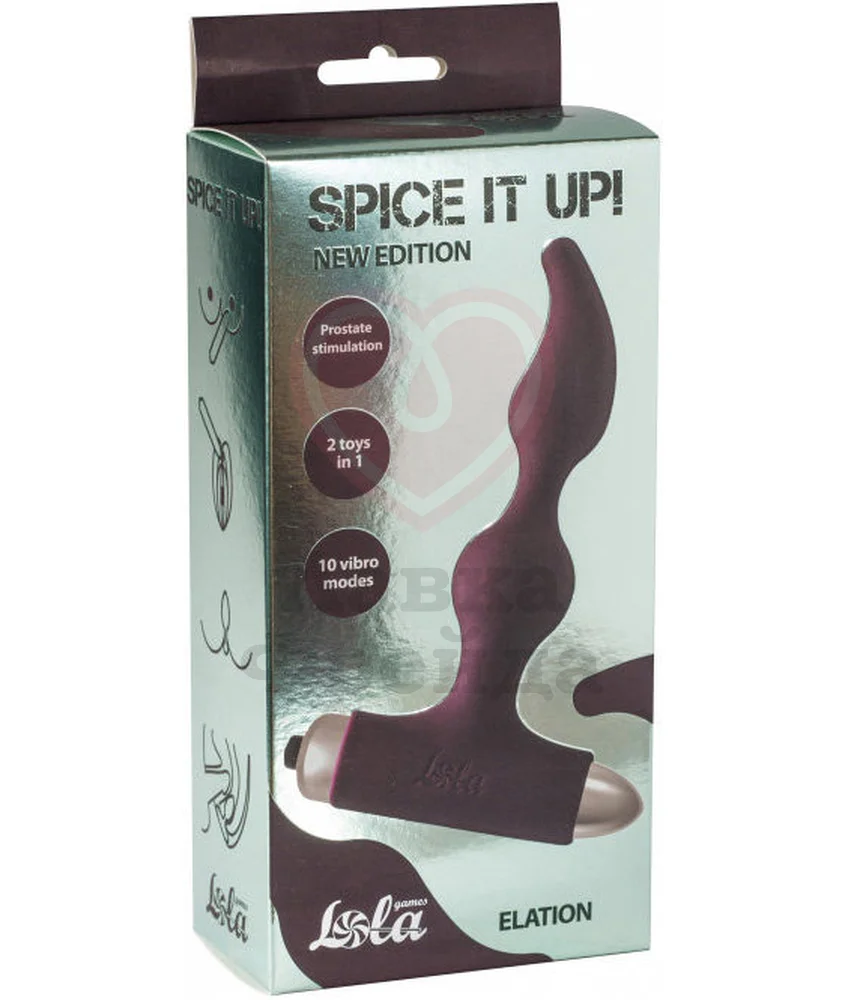 Анальный стимулятор Spice It Up New Edition Elation изготовлен из нежного, тактильно приятного силикона, сочетаемого с лубрикантами только на водной основе. Фактурная анатомическая форма игрушки эффективно стимулирует самые чувствительные области женского или мужского тела. Удовольствие усиливает вибропуля с 10 режимами вибрации, расположенная на основании стимулятора. Вибропуля съемная, работает от одной батарейки типа AAA (нужно покупать отдельно). Очищать антибактериальным спреем для игрушек или аккуратно мыть водой и мылом.