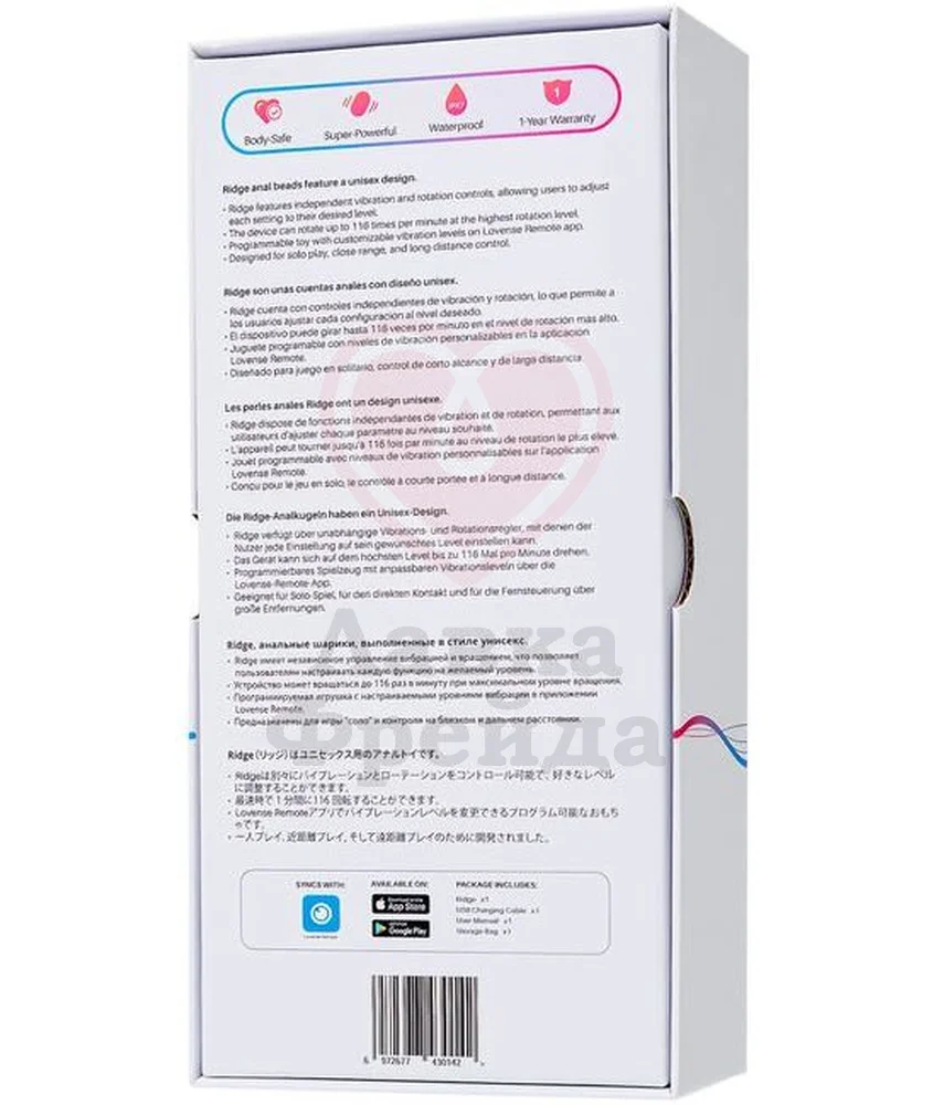 Управление вибратором происходит через мобильное приложение Lovense Remote - можно отдать контроль партнеру, чтобы он мог доставить наслаждение на любом расстоянии от вас. Перезаряжается через USB кабель, идущий в комплекте - 85 минут заряда обеспечивают до 160 минут работы на полных скоростях. Лубрикант на водной основе сделает проникновение более скользящим и приятным. Очищать антибактериальным спреем для игрушек, или мыть теплой водой с мылом. Диаметр шариков - 2,5 см, 3 см, 3,4 см.