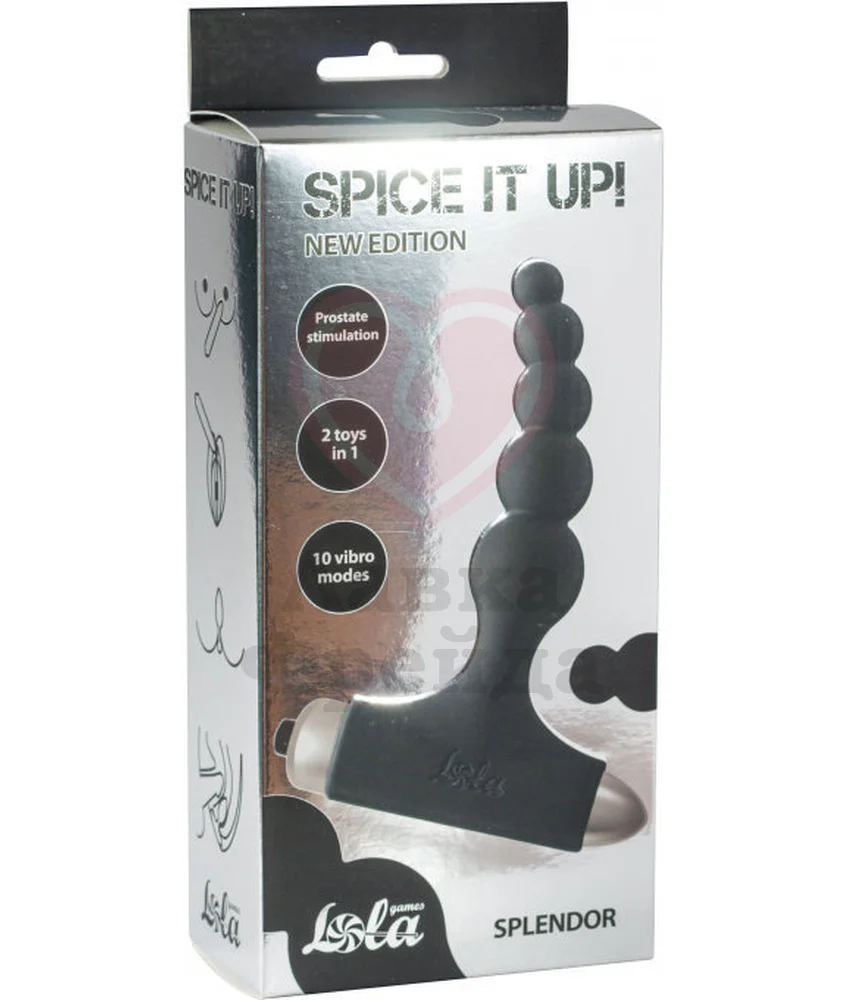 Анальный стимулятор Spice it up New Edition Splendor - силиконовая ёлочка, состоящая из постепенно увеличивающихся, от кончика к основанию, бусин. Анатомическая форма игрушки обеспечит эффективную стимуляцию нервных окончаний ануса и мужской простаты. Удовольствие усиливает съемная вибропуля, имеющая 10 вибро-режимов разной интенсивности. Работает от одной батарейки типа AAA (нужно покупать отдельно). Использовать с лубрикантами только на водной основе. Очищать мыльным раствором или антибактериальным спреем для игрушек.