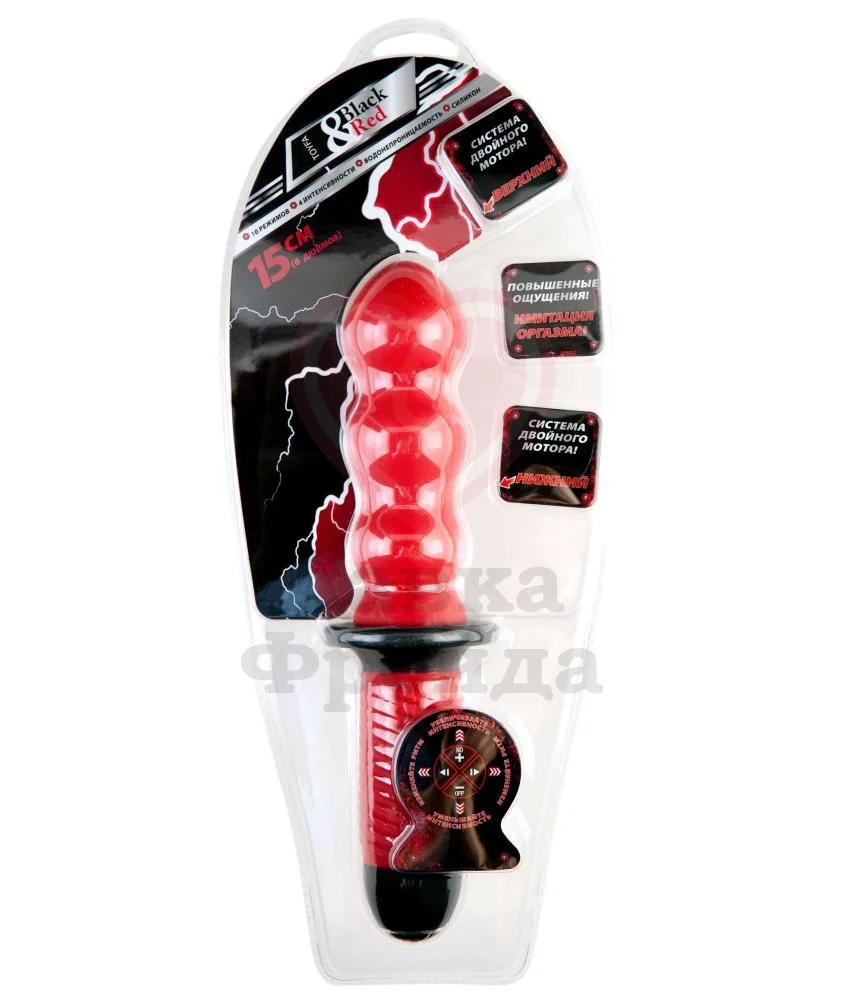 Большой рельефный анальный вибратор с ручкой ToyFa красный