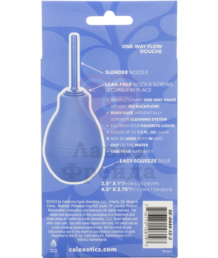 С помощью душа Cheeky One-Way Flow Douche можно подготовиться для проникающего секса, не допуская протечек и обеспечивая себе максимум удобства во время использования аксессуара. Изделие дополнено односторонним клапаном, не дающим обратного потока, что делает процедуру очистки более гигиеничной и безопасной.