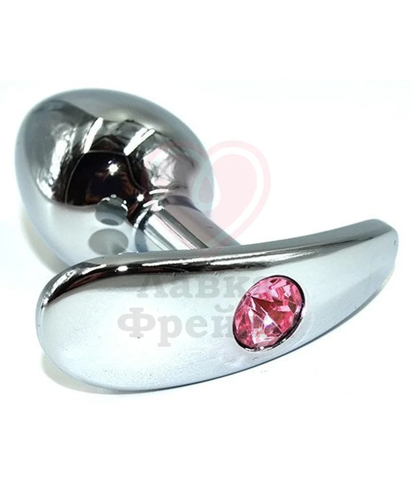 Небольшая анальная пробка подойдёт, как новичкам, так и уже знакомым с подобными практиками: игрушку можно использовать в качестве развлечения на вечер для дополнительной стимуляции, так и для более длительного ношения. Девайс специально оснащен небольшой ножкой и узким основанием-стопером, украшенным нежно-розовым стразом. Общая длина изделия 8 см, а диаметр 3. Вес 56 г.Игрушки из металла хороши тем, что они быстро нагреваются или охлаждаются, а также их можно использовать с лубрикантами на любой основе.