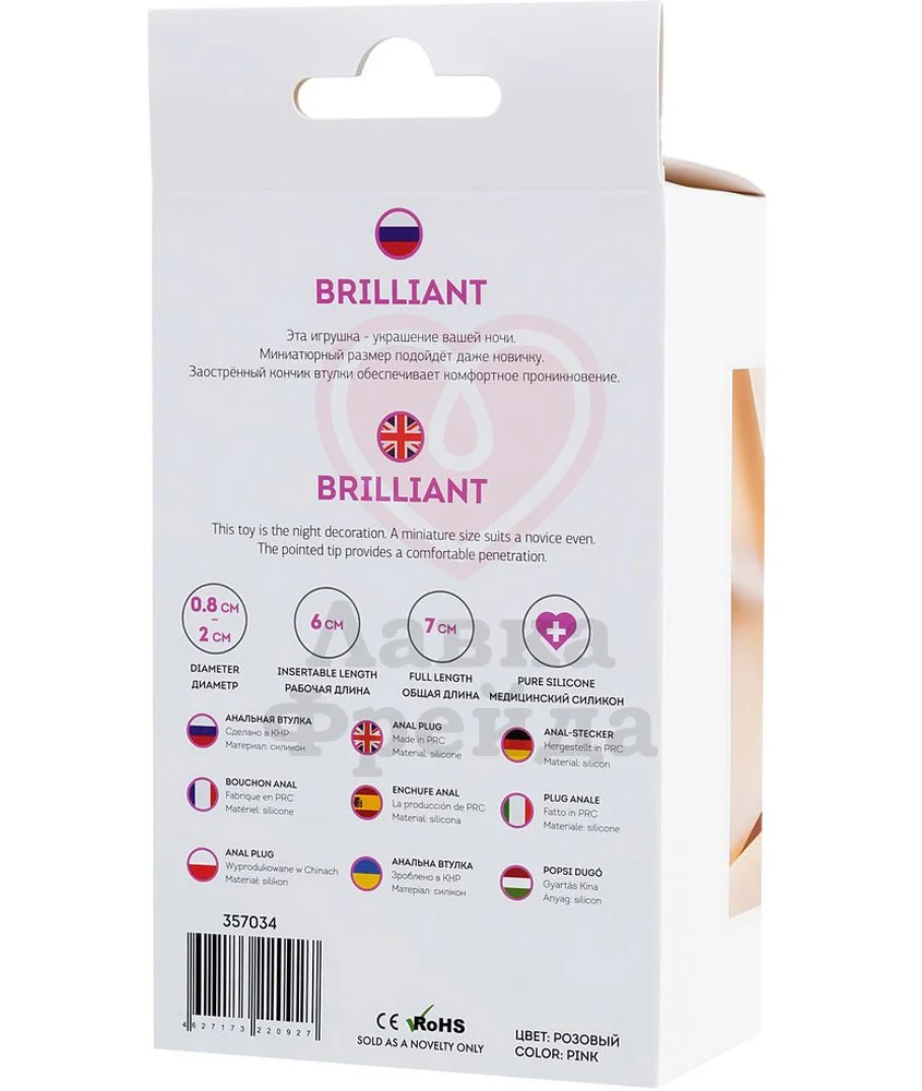ToDo by Toyfa Brilliant - миниатюрная пробка, подходящая для первого знакомства с анальной стимуляцией. При весе 50 грамм и рабочей длине 6 см она создаёт ощущение приятного наполнения, не перегружая деликатные зоны. Максимальный диаметр - 2,8 см, что также подходит для пользователей с минимальным опытом, а плавный изгиб плага повторяет анатомические контуры, обеспечивая комфортную посадку.