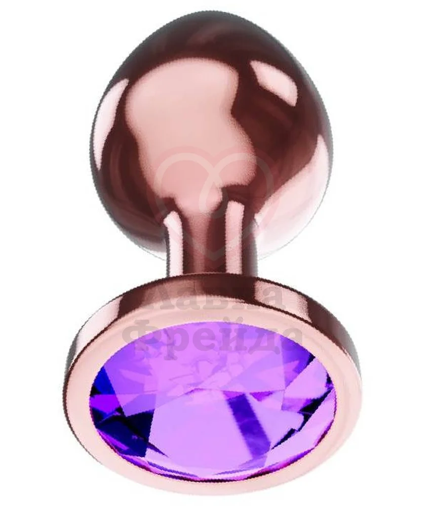 Анальный плаг Lola Games Diamond Amethyst Shine S выполнен из гладкого полированного металла, совместимого с анальными лубрикантами на любой основе ― водной, силиконовой, масляной. Оттенок стали ― розовое золото, а основание пробки украшает красиво огранённый круглый кристалл фиолетового цвета.