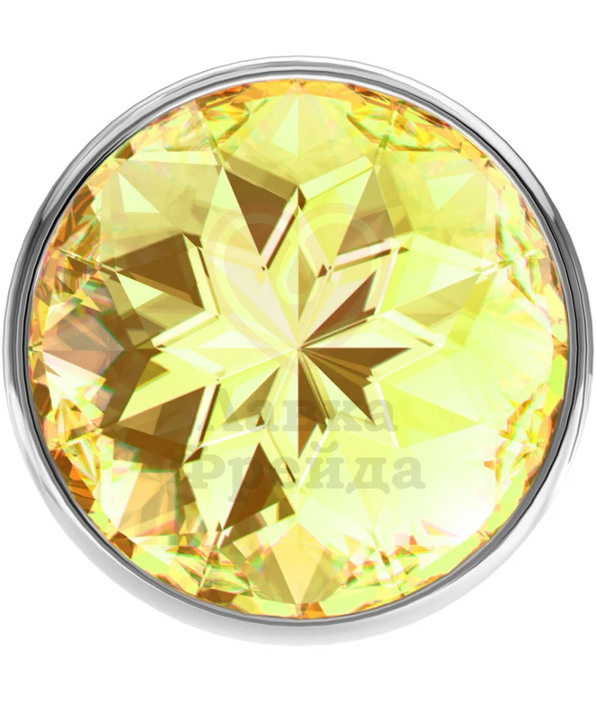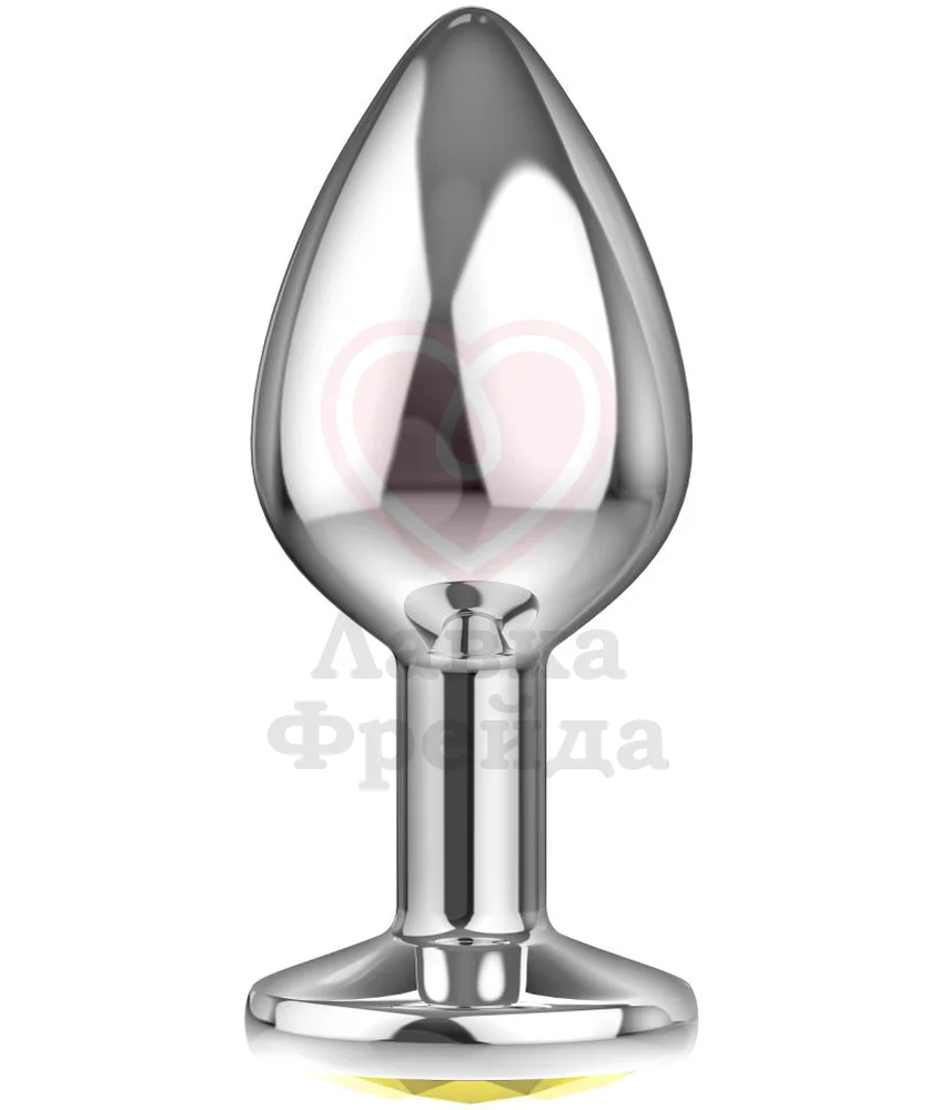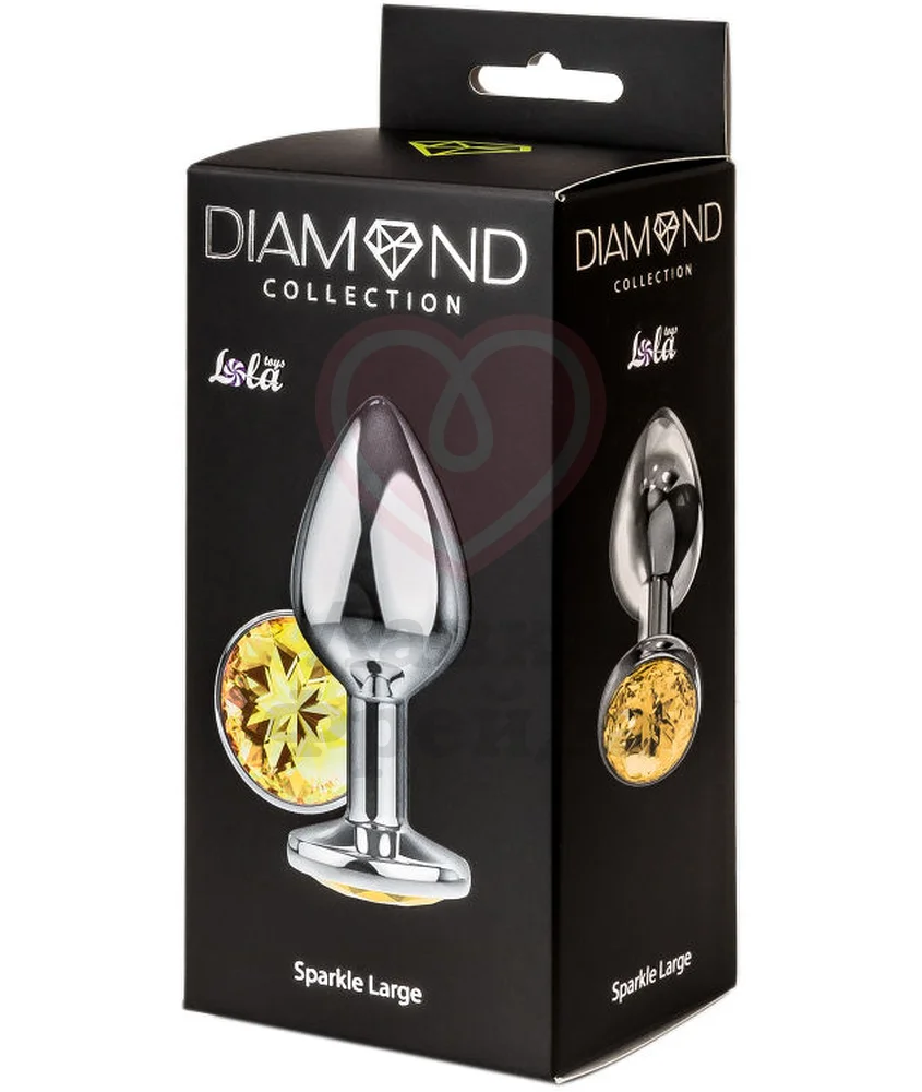 Плаг Lola Games Diamond Yellow Sparkle Large изготовлен из гладкой полированной стали, совместимой с любыми анальными смазками ― на водной, силиконовой, водно-силиконовой или масляной основе. Цвет металла ― розовое золото. Широкое основание украшает крупный, красиво огранённый кристалл жёлтого цвета.