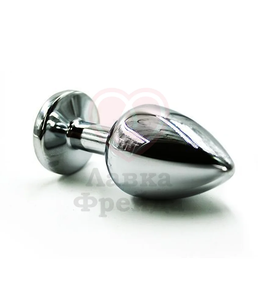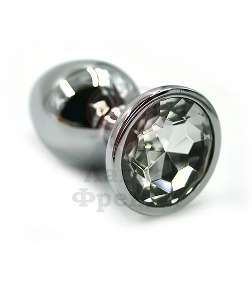 Анальная пробка из алюминия размер L. Длина - 8,4 см, диаметр - 4 см, вес - 165,5 грамма. Страз в основании круглой формы, выполнен из прозрачного пластика. Упакована в вельветовый мешочек для хранения.