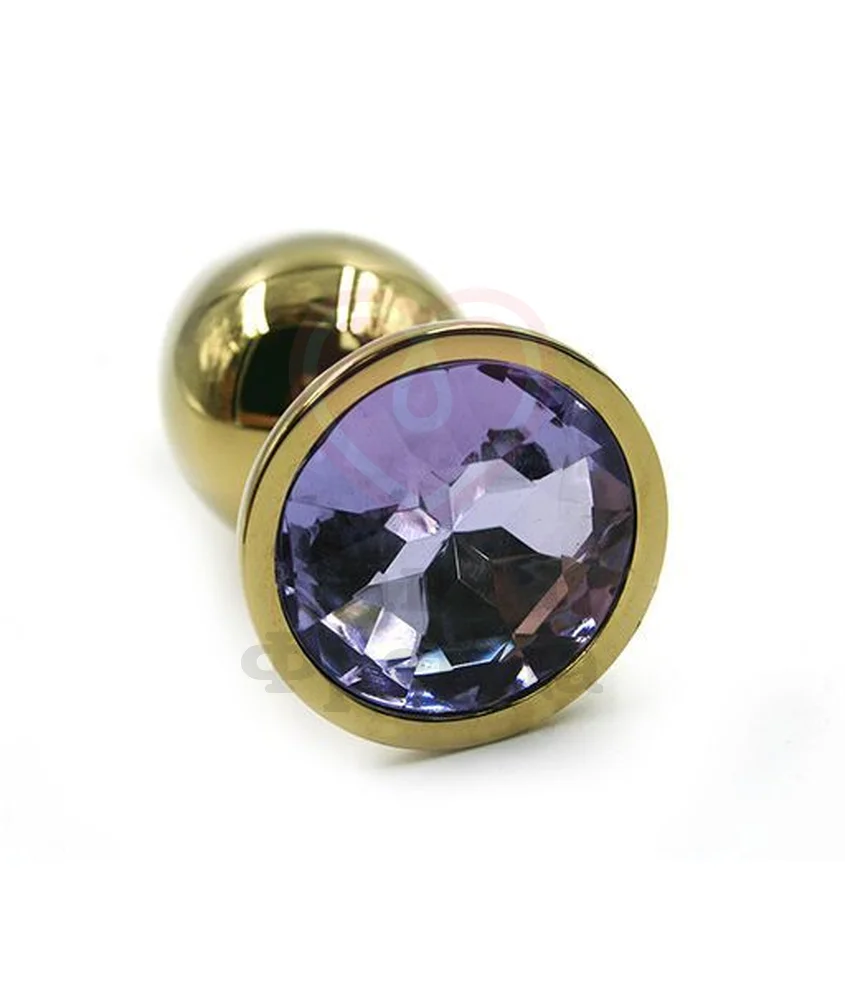 Облегченный вариант классической металлической анальной пробочки с сиреневым стразом выполнен из гладко отполированного алюминия с золотым покрытием. Небольшой размер и вес (глубина проникновения 6 см, максимальный диаметр 2,6 см, вес 50 грамм) прекрасно подойдет для первого опыта анальной стимуляции.