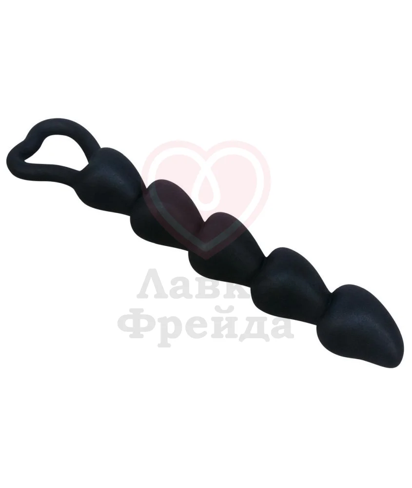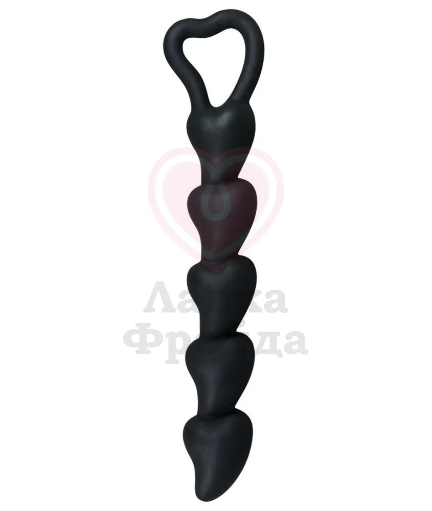 Необычный анальный стимулятор Black Velvets – это елочка, звенья которой выполнены в форме сердечек. Он изготовлен из медицинского силикона, который прекрасно гнется, не впитывает запахи и сочетается с водными смазками. Закругленный кончик позволяет легко ввести игрушку, а петля помогает управлять процессом стимуляции абсолютно точно, гарантирует безопасное и комфортное извлечение. Минимальный диаметр между звеньями не превышает 1,3 см, а максимальный – 2,6 см у основания. Общая длина 18,5 см, а максимальная длина введения 15 см.