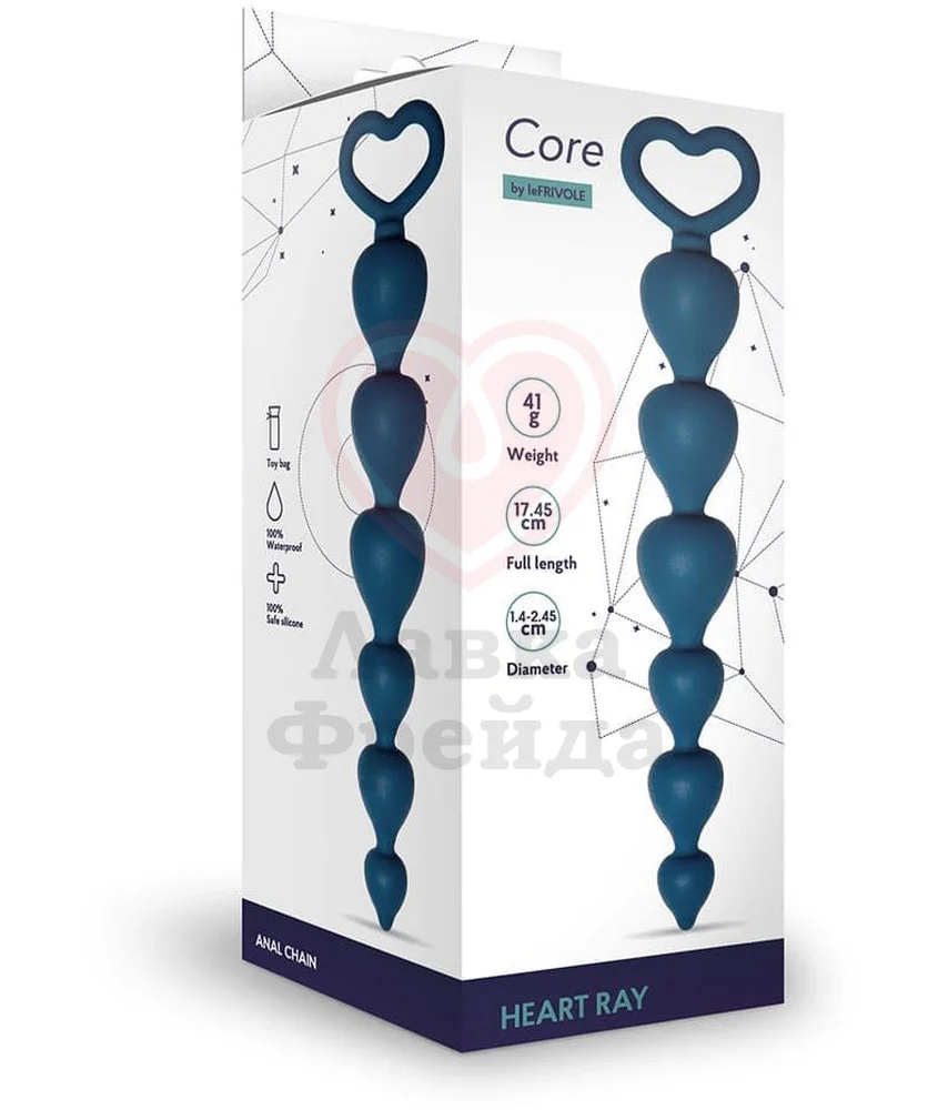 Анальная цепочка Heart Ray выполнена из качественного медицинского силикона, совместимого с лубрикантами только на водной основе. Игрушка состоит из шести звеньев в форме сердечек, размер которых постепенно увеличивается от кончика к основанию. Эластичное кольцо-ограничитель в форме сердца позволяет контролировать глубину проникновения. Очищать обычным мыльным раствором, специализированным спреем для игрушек или кипятить для полной стерилизации. В наборе также идет фирменный мешочек для хранения.