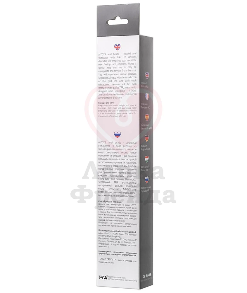 ''A-TOYS anal beads - анальный стимулятор в виде цепочки из звеньев разного диаметра, внесет в вашу сексуальную жизнь новые ощущения и эмоции. При помощи специального кольца секс-игрушкой легко манипулировать и извлекать из анального отверстия. Вы ощутите неповторимые приятные ощущения уже при введении первого звена и с каждым последующим удовольствие будет еще сильнее. Высококачественный TPR, анатомически продуманный рельеф, водостойкость — стимулятор A-TOYS anal beads создан для того, чтобы доставить незабываемое удовольствие!''