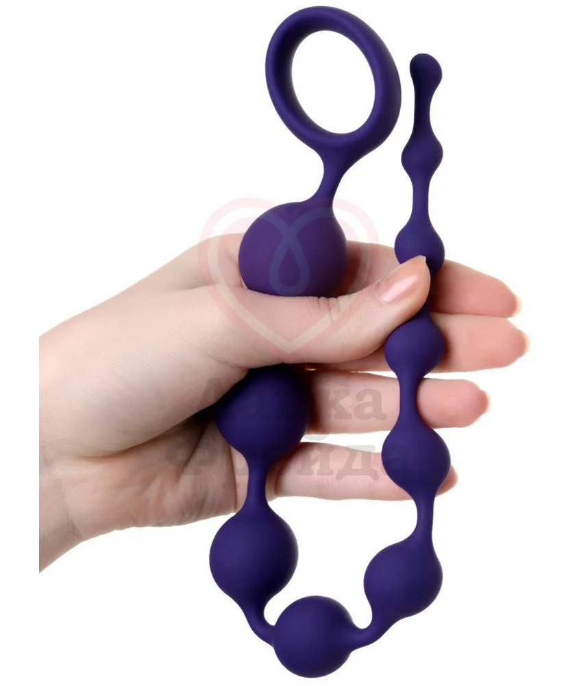 Анальная цепочка состоящая из небольших шариков, увеличивающихся в диаметре от 1 см до 2,7 см. Общая длина игрушки 35 см, длина проникновения 31 см. На конце расположено колечко, которое не только является стопером для безопасного использования, но и удобной ручкой.