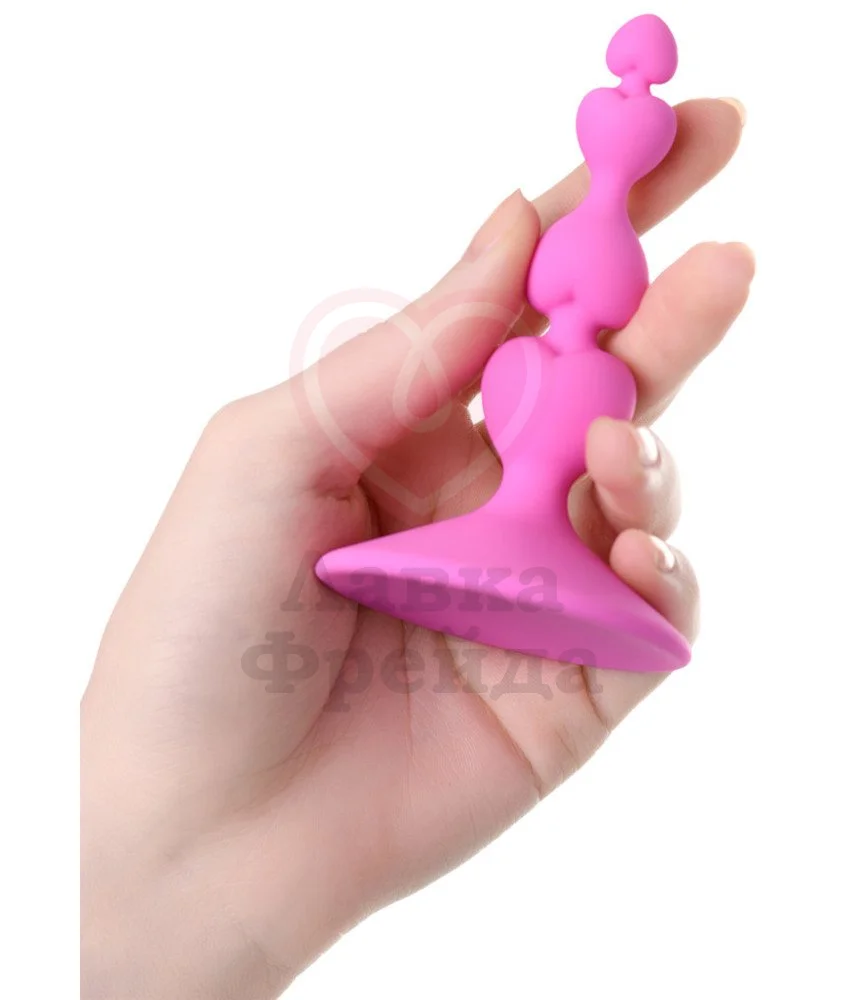 Небольшая анальная елочка выполнена из медицинского силикона и состоит из объемных сердечек разного диаметра. Компактный размер с длиной проникновения 7,5 см и максимальным диаметром в 2,3 см подойдет даже новичками. Тонкий кончик обеспечит плавное проникновение, особенно с дополнительной анальной смазкой на водной основе, а рельефная поверхность — ощутимую приятную стимуляцию. Присоска на основании позволит экспериментировать без рук. После использования пробку легко помыть с водой, мылом и специальным средством.
