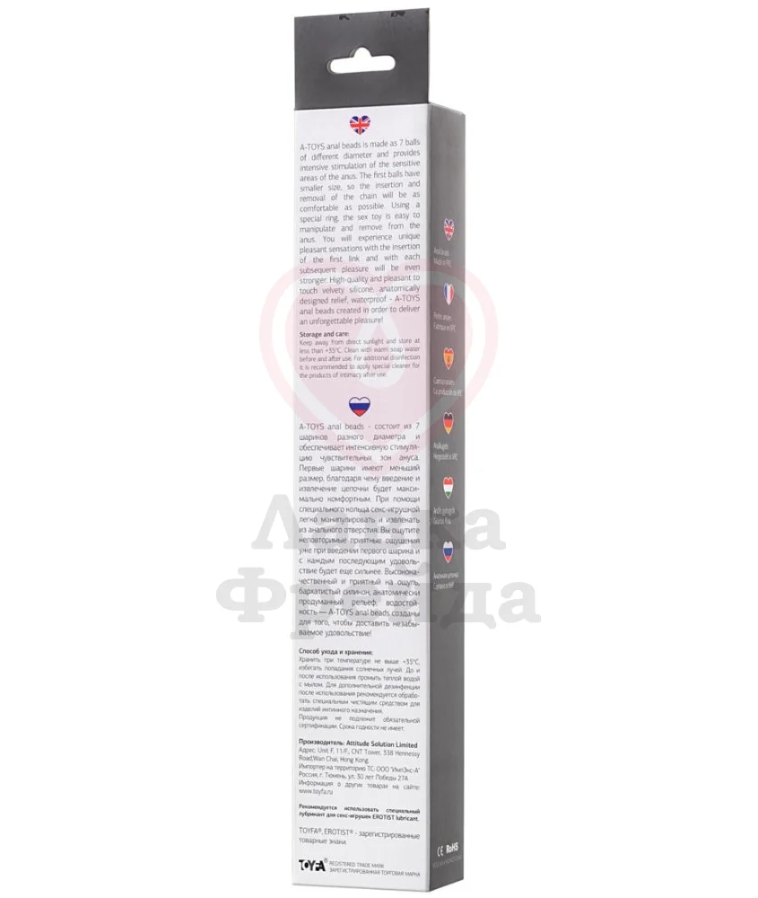 A-TOYS anal beads - состоит из 7 шариков разного диаметра и обеспечивает интенсивную стимуляцию чувствительных зон ануса. Первые шарики имеют меньший размер, благодаря чему введение и извлечение цепочки будет максимально комфортным. При помощи специального кольца секс-игрушкой легко манипулировать и извлекать из анального отверстия. Вы ощутите неповторимые приятные ощущения уже при введении первого звена и с каждым последующим удовольствие будет еще сильнее. Высококачественный и приятный на ощупь, бархатистый силикон, анатомически продуманный рельеф, водостойкость — A-TOYS anal beads создан для того, чтобы доставить незабываемое удовольствие!