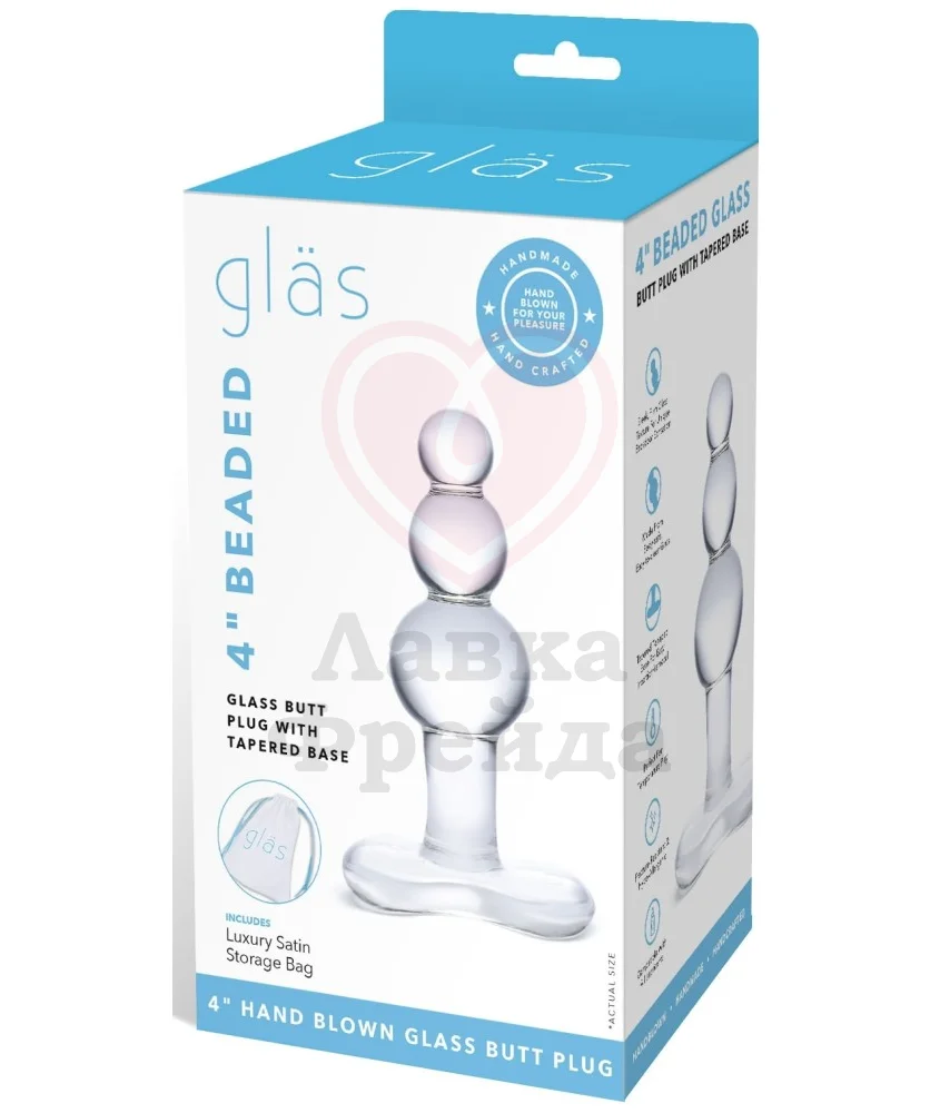 Игрушки от Glas - это качественное удовольствие из особенно приятного материала. Стекло ручной работы абсолютно безопасно и гипоаллергено. Крайне прочное, поэтому прослужит вам очень долго. С ним можно использовать смазку на любой основе.