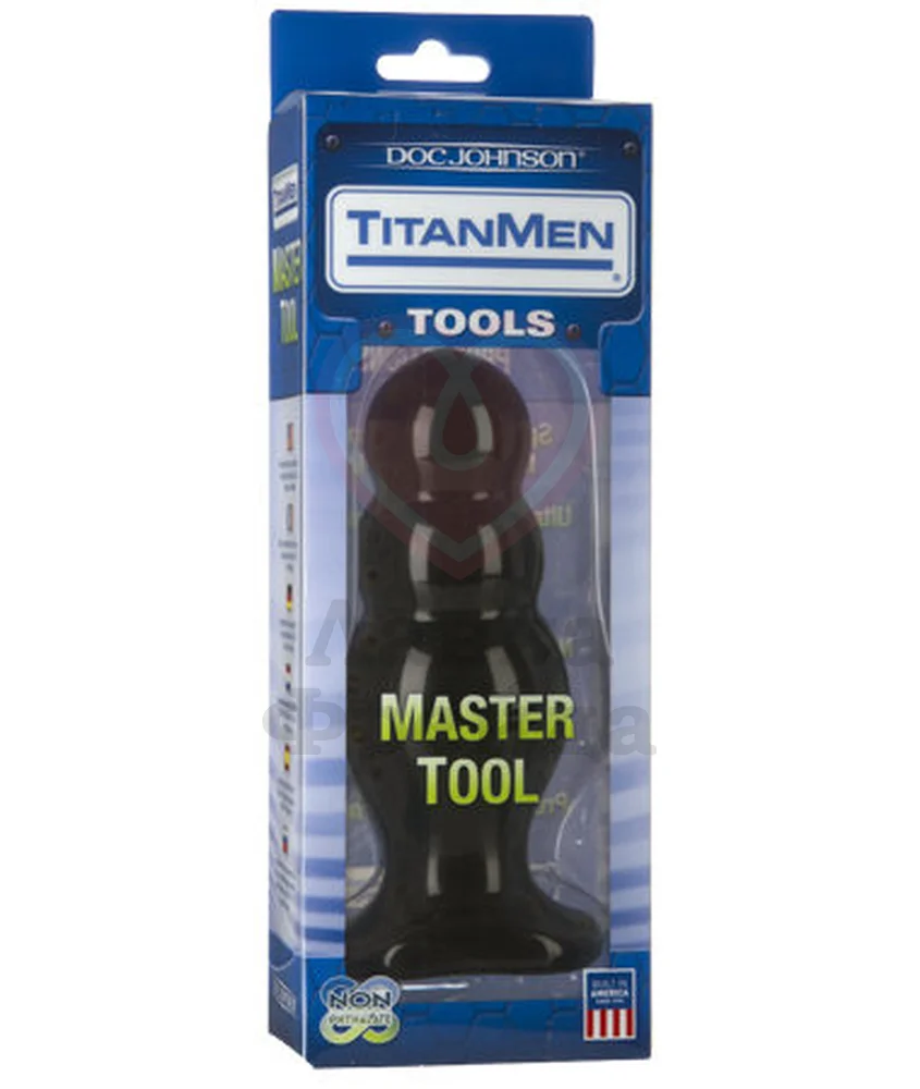 Анальный стимулятор TitanMen Master Tool # 4 - пробка оригинальной формы. Гладкий упругий не пористый материал идеален для анального стимулятора, первое время имеет стойкий запах - мойте с мылом или очищающим средством. Длина пробки 16,5 см, диаметр шариков 3 - 6,6 см. Использовать можно с лубрикантом на водной и силиконовой основе, анальным или для фистинга.