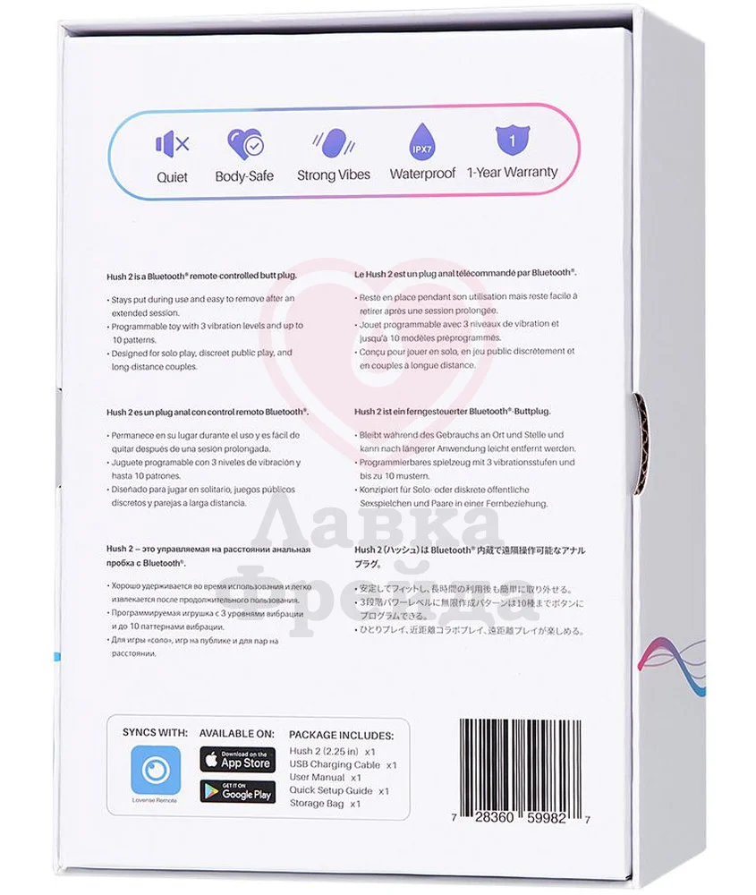 Lovense Hush 2 L предоставляет разнообразное удовольствие — мощный мотор и глубокие вибрации — можно запрограммировать так, как вам нравится, при помощи приложения для смартфона Lovense Remote App, доступного для iOS или Android.