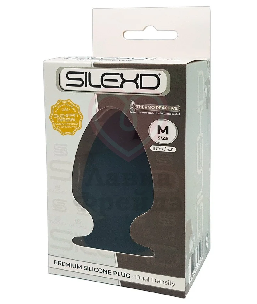 Анальная пробка выполнена из особого медицинского силикона Silexpan, который меняет свои свойства при температурных изменениях, а также легко проминается пальцами и возвращается в свою исходную форму. Будьте внимательны, размер M довольно объёмный: хоть длина проникновения и составляет 10 см, максимальный диаметр пробочки довольно большой - 6,5 см.