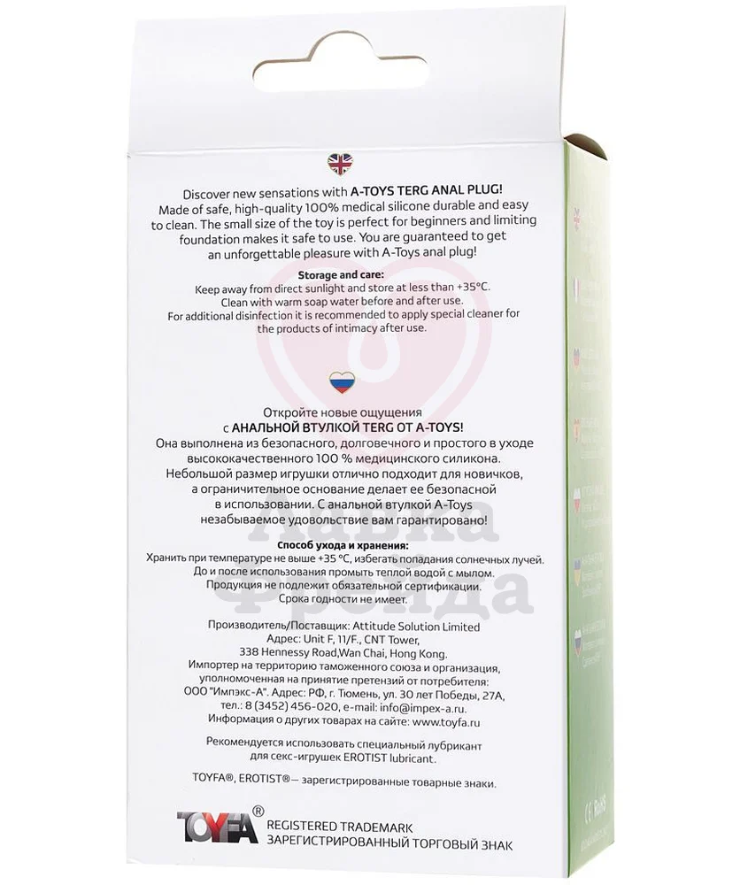 Анальная пробка A-Toys by Toyfa Terg имеет небольшой размер, что делает её оптимальным вариантом для начинающих. Объёмная округлая головка дополнена фактурным рельефом, который будет дополнительно стимулировать внутренние эрогенные зоны. Широкое основание-ограничитель надёжно фиксирует изделие на месте, не позволяя ему полностью уйти внутрь.