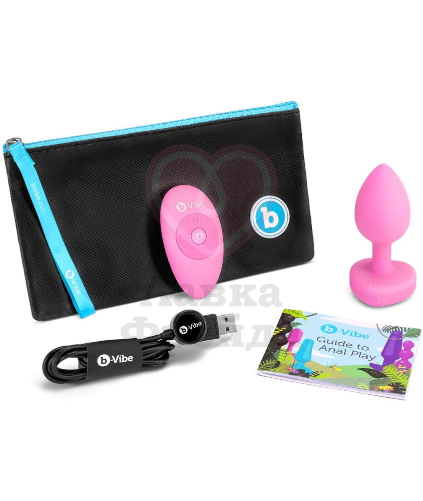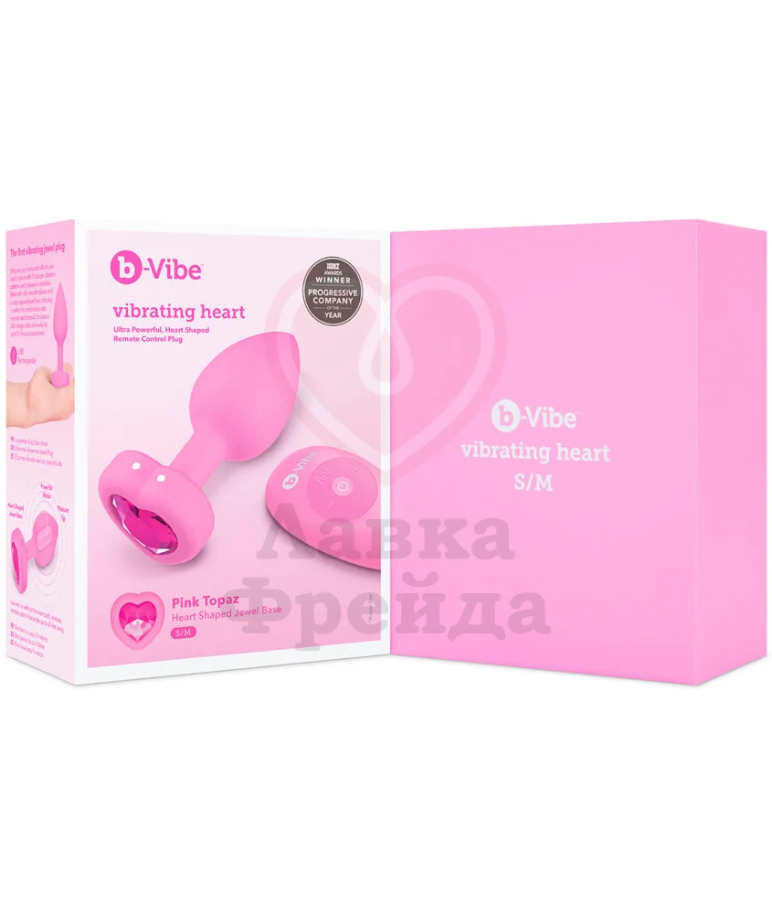 Анальная пробка с кристаллом сердцем и вибрацией b-Vibe Heart Shape Jewel Plug S/M розовая