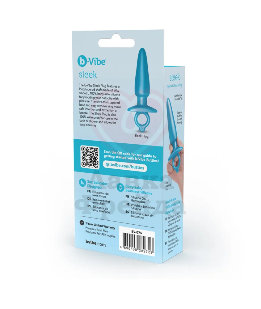 Игрушка выполнена из медицинского силикона, совместимого с лубрикантами только на водной основе. Очищать пробку можно с помощью специализированных антибактериальных средств для игрушек, либо использовать обычный мыльный раствор. Силиконовый плаг представлен в ярком голубом оттенке.