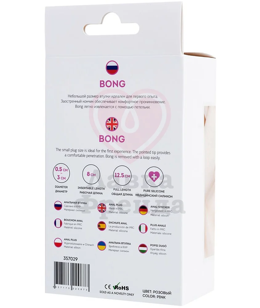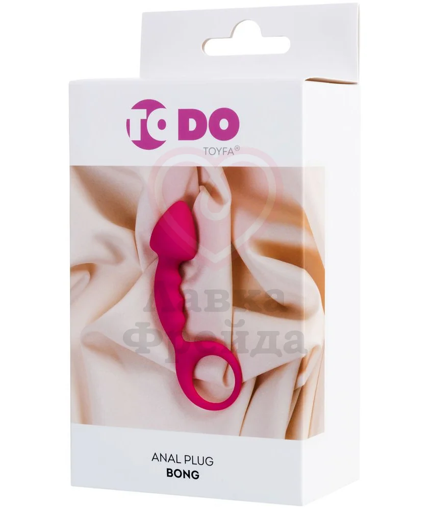Анальная пробка ToDo by Toyfa Bong имеет объёмную заострённую головку, облегчающую введение, и фактурное тело, которое обеспечивает дополнительную стимуляцию самых чувствительных зон. Петля в основании служит гарантией безопасности, также с её помощью будет легче извлечь игрушку.