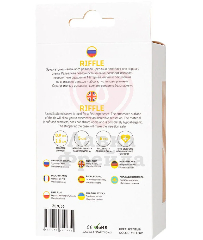 Пробка ToDo by Toyfa Riffle имеет компактные параметры (5 см проникающей части и максимальный диаметр 2,8 см), идеально подходящие для первого знакомства с анальной стимуляцией. Кончик плага дополнен рельефной массажной поверхностью, которая будет усиливать приятные ощущения во время проникновения.