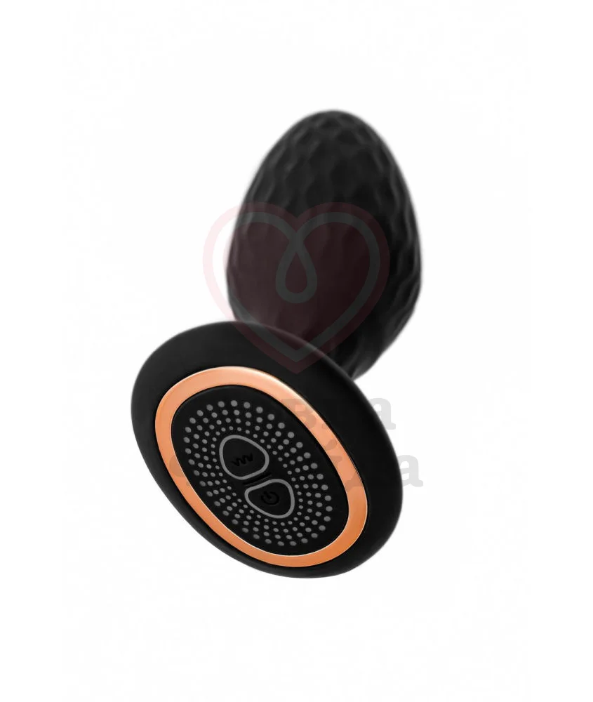 Поверхность анальной пробки Popo Pleasure Tucana покрыта фактурными массажными волнами, которые усиливают наслаждение, вызванное проникновением и ощущением наполненности. Также аксессуар ускоряет приближение кульминации 9 режимами вибрации и функцией ротации на 9 скоростях. Переключаться между режимами можно кнопками, расположенными на корпусе девайса или пультом дистанционного управления.