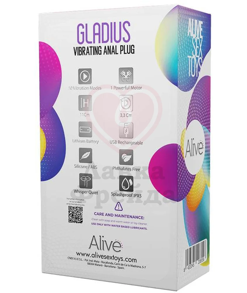 Фактурная анальная пробка Gladius, стимулирующая нервные окончания ануса своими изгибами, имеет в комплекте съемную вибропулю, которая дополнительно усиливает наслаждение от проникновения. Пуля имеет 10 вибро-режимов, переключаться между которыми можно кнопкой, находящейся на корпусе виброэлемента. Перезаряжается через USB кабель. Бархатистый силикон плага совместим с лубрикантами только на водной основе. Очищать мыльным раствором или специальным спреем для игрушек.