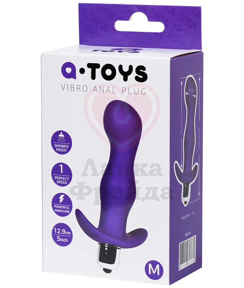 Анальная пробка A-Toys Vibro Anal Plug вытянутой формы, имеет округлый и слегка загнутый кончик для универсальной стимуляции — подойдет как для мужчин, так и для женщин. На основании расположена кнопка управления вибрацией, на выбор доступно 7 режимов.