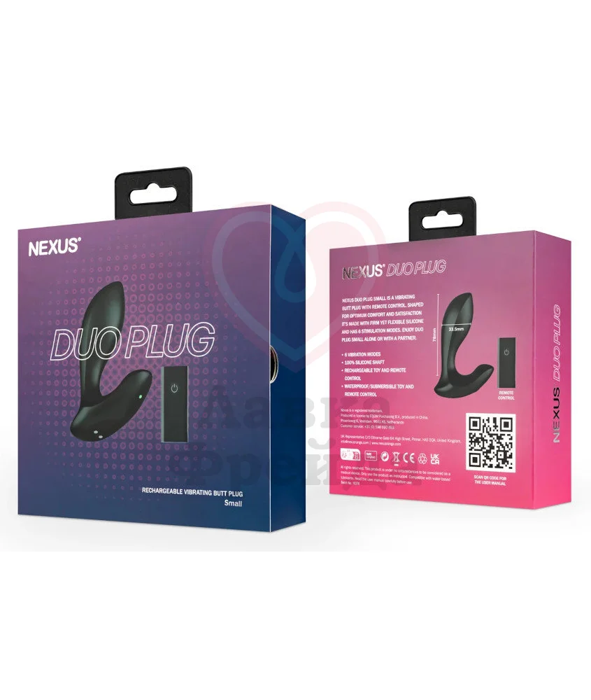 Nexus Duo — это небольшая анальная вибропробка специальной формы для ярких ощущений, режимами которой можно управлять при помощи дистанционного пульта. Игрушка выполнена из приятного на ощупь медицинского силикона, а длинное узкое основание будет оказывать дополнительную стимуляцию на промежность. Длина проникновения составит 7,8 см, а максимальный диаметр — 3,4 см, что подойдет даже для новичков.