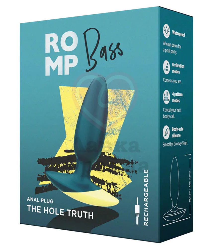 Анальная пробка Romp Bass создана специально для удовольствия с максимальным комфортом. Зауженный округлый кончик, гибкая ножка, длинное основание стопер и классическая гладкая форма — залог самых приятных ощущений. Длина проникновения составит 8,8 см, а максимальный диаметр — 3 см. Игрушка выполнена из медицинского силикона — нежного на ощупь и совместимого с лубрикантами на водной основе.