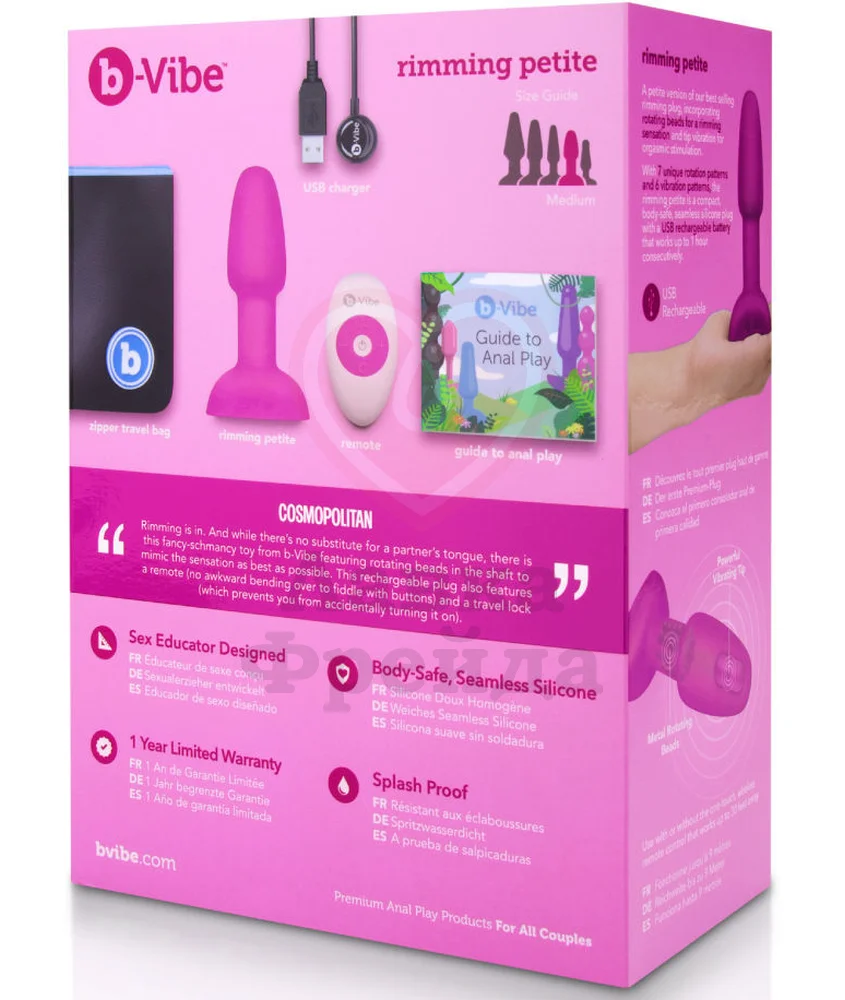 Анальная пробка b-Vibe Rimming Petite с мощным вибро-моторчиком и ротацией в основании создаст невероятные ощущения настоящего римминга. Вы или ваш партнер сможете управлять удовольствием - дистанционный пульт имеет радиус действия 9 метров. Теперь игры могут не ограничиваться спальней!