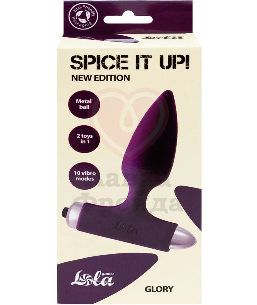 Анальный плаг Spice it up New Edition Glory сделан из высококачественного силикона, совместимого со смазками только на водной основе. В нижней части аксессуара находится специальное кольцо, куда вставляется вибропуля, идущая в комплекте с игрушкой. Вибропуля съемная, имеет 10 вибро-режимов разной интенсивности, работает от одной батарейки типа AAA (нужно покупать отдельно).