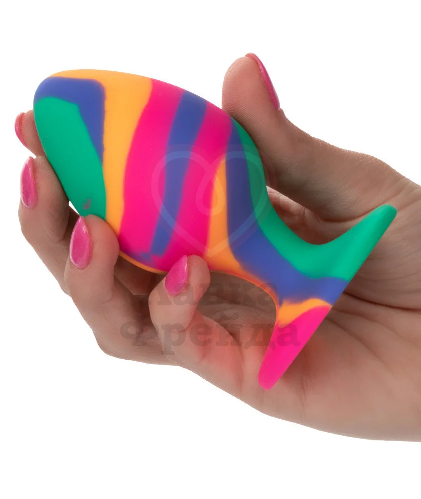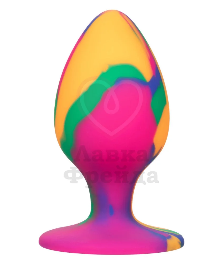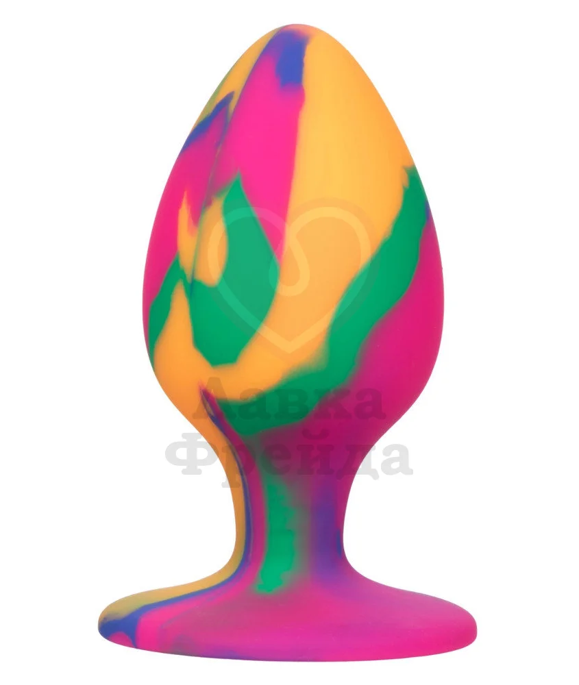 Игрушка выполнена из медицинского силикона, покрашенного в сочные цвета с уникальным рисунком. Совмещать пробку необходимо с лубрикантами на водной основе, а очищать с водой, мылом и специальными средствами.