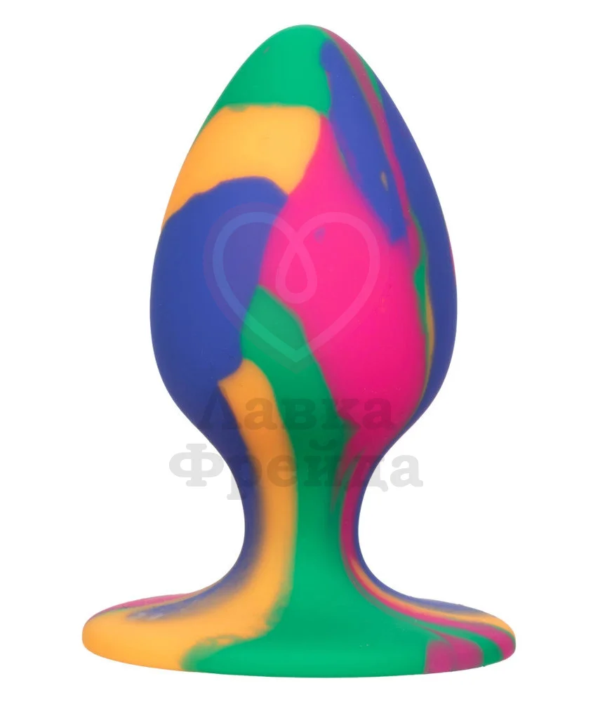 Игрушка выполнена из медицинского силикона, покрашенного в сочные цвета с уникальным рисунком. Совмещать пробку необходимо с лубрикантами на водной основе, а очищать с водой, мылом и специальными средствами.