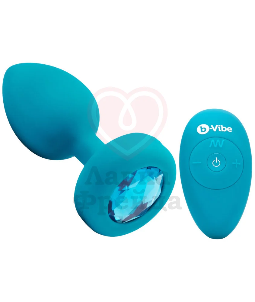 Анальная пробка b-Vibe Vibrating Jewel Plug украшена кристаллом и имеет управление от пульта для максимального удобства. Игрушка идет в комфортном размере S/M, подходящем для новичков: общей длиной 9,7 см, длиной проникновения 8,8 см и максимальным диаметром 3,7 см. За счет удобной зауженной формы и приятного медицинского силикона — пробкой очень легко пользоваться.