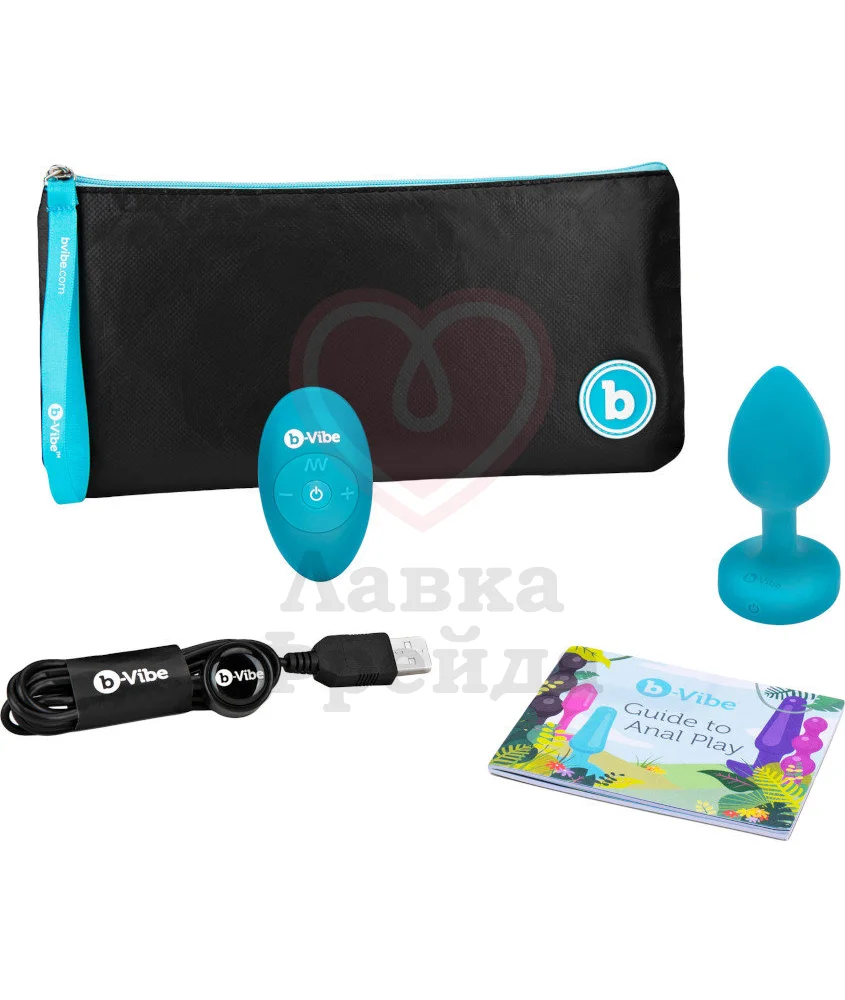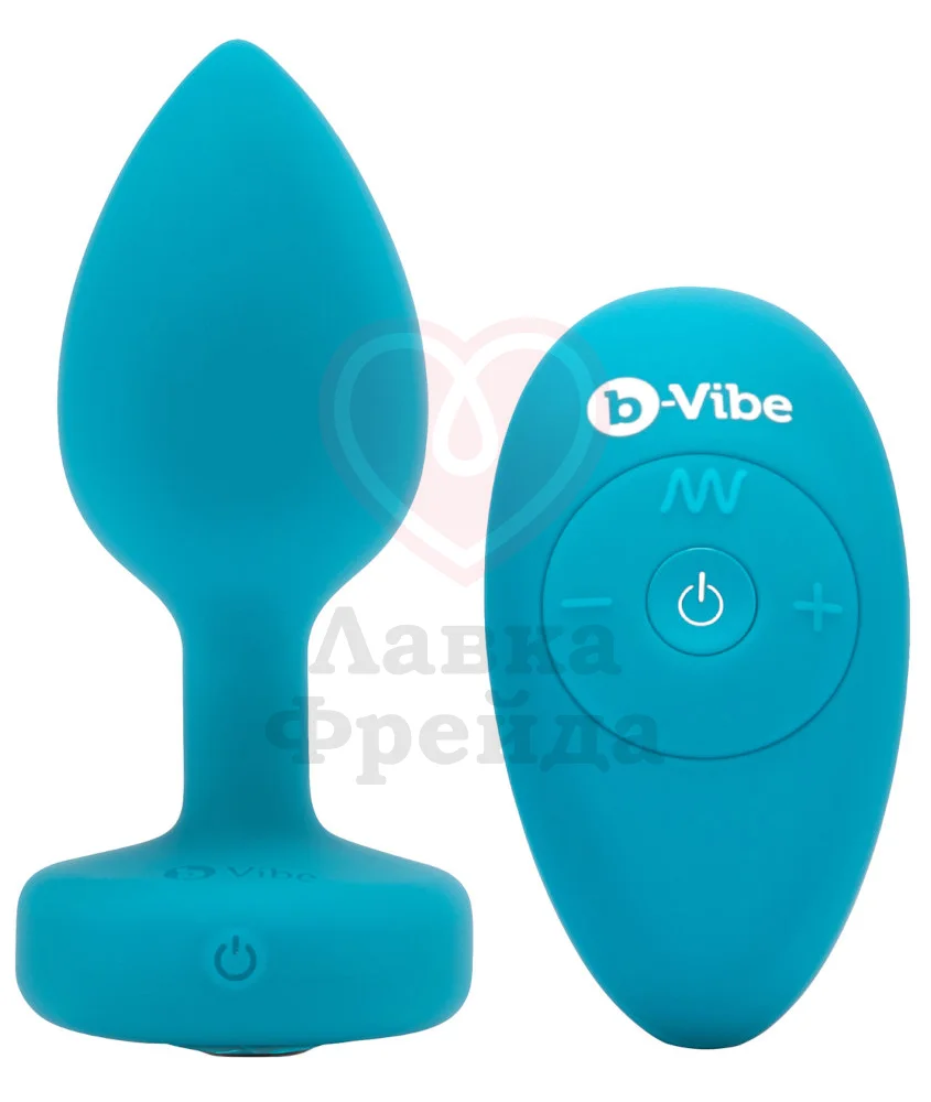 Маленькая вибропробка b-Vibe Vibrating Jewel Plug с кристаллом и пультом бирюзовая