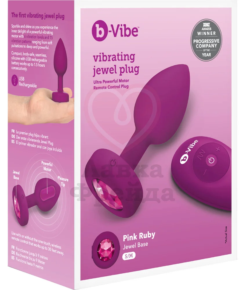 Анальная пробка b-Vibe Vibrating Jewel Plug украшена кристаллом и имеет управление от пульта для максимального удобства. Игрушка идет в комфортном размере S/M, подходящем для новичков: общей длиной 9,7 см, длиной проникновения 8,8 см и максимальным диаметром 3,7 см. За счет удобной зауженной формы и приятного медицинского силикона — пробкой очень легко пользоваться.