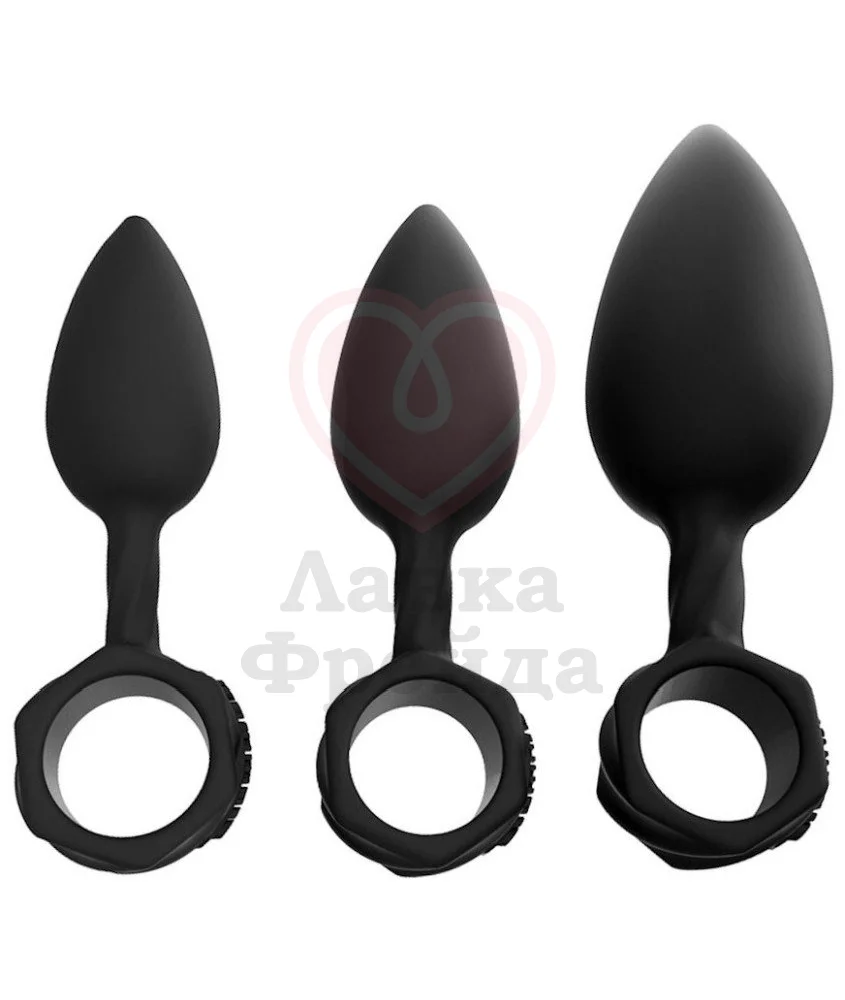 Всего в набор входит три анальные пробки разного размера и диаметра. Они выполнены из безопасного гипоаллергенного силикона, который можно использовать с любой смазкой на водной основе, а очищать водой с мылом и специальным средством для очистки.