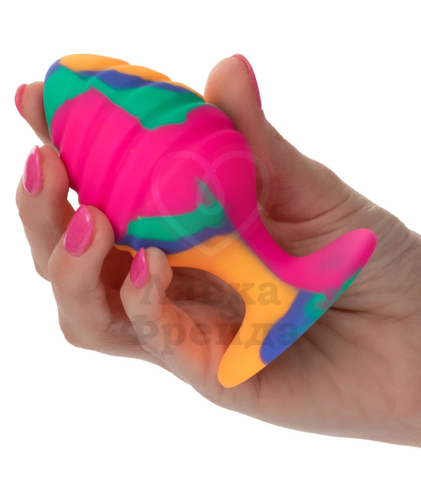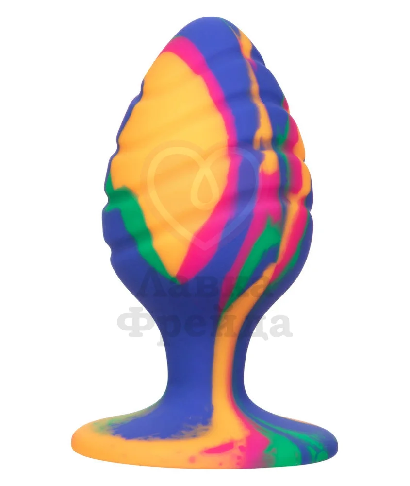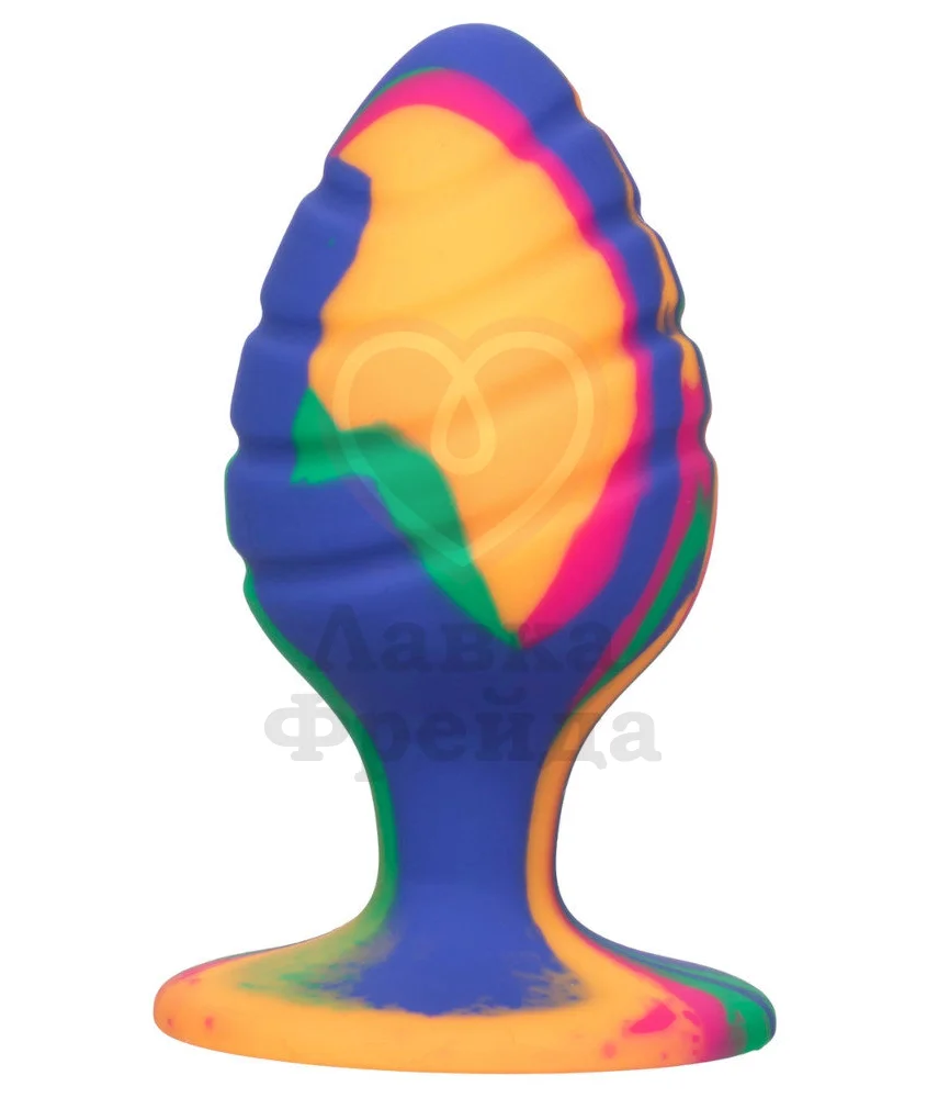 Игрушка выполнена из медицинского силикона, покрашенного в сочные цвета с уникальным рисунком. Совмещать пробку необходимо с лубрикантами на водной основе, а очищать с водой, мылом и специальными средствами.