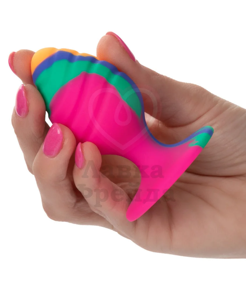 Игрушка выполнена из медицинского силикона, покрашенного в сочные цвета с уникальным рисунком. Совмещать пробку необходимо с лубрикантами на водной основе, а очищать с водой, мылом и специальными средствами.