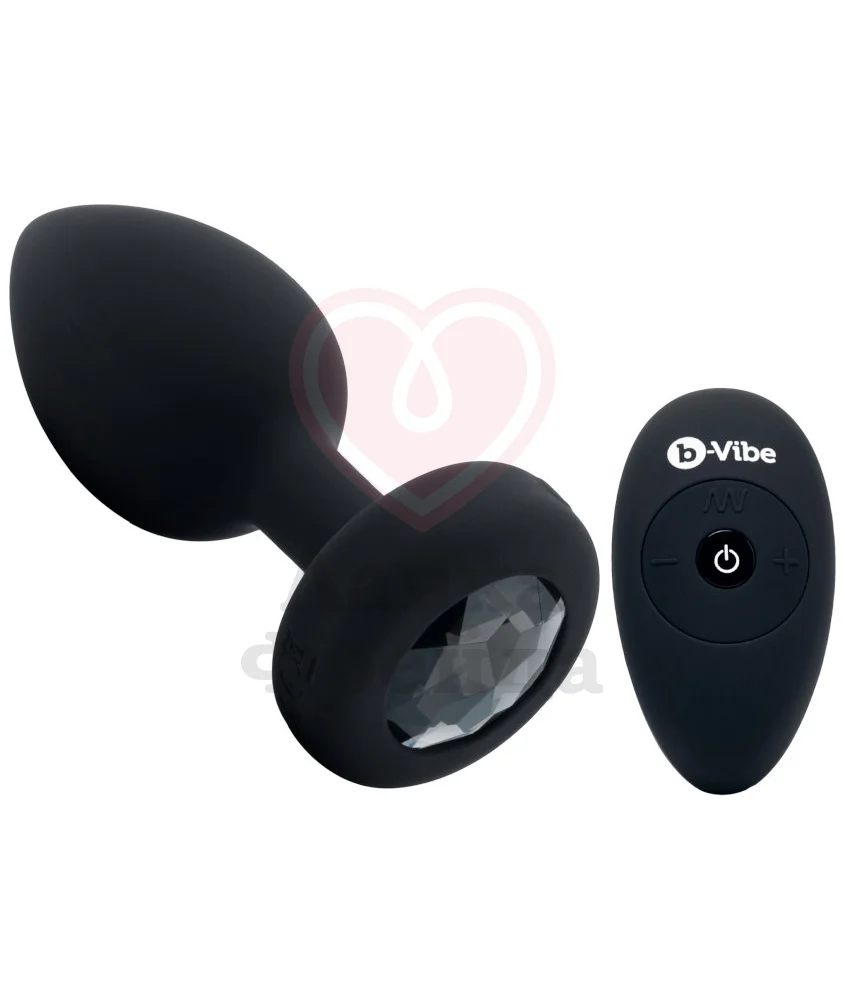 Анальная пробка b-Vibe Vibrating Jewel Plug украшена кристаллом и имеет управление от пульта для максимального удобства. Игрушка идет в классическом размере M/L, подходящем для более опытных пользователей: общей длиной 10,3 см, длиной проникновения 9,3 см и максимальным диаметром 3,9 см.