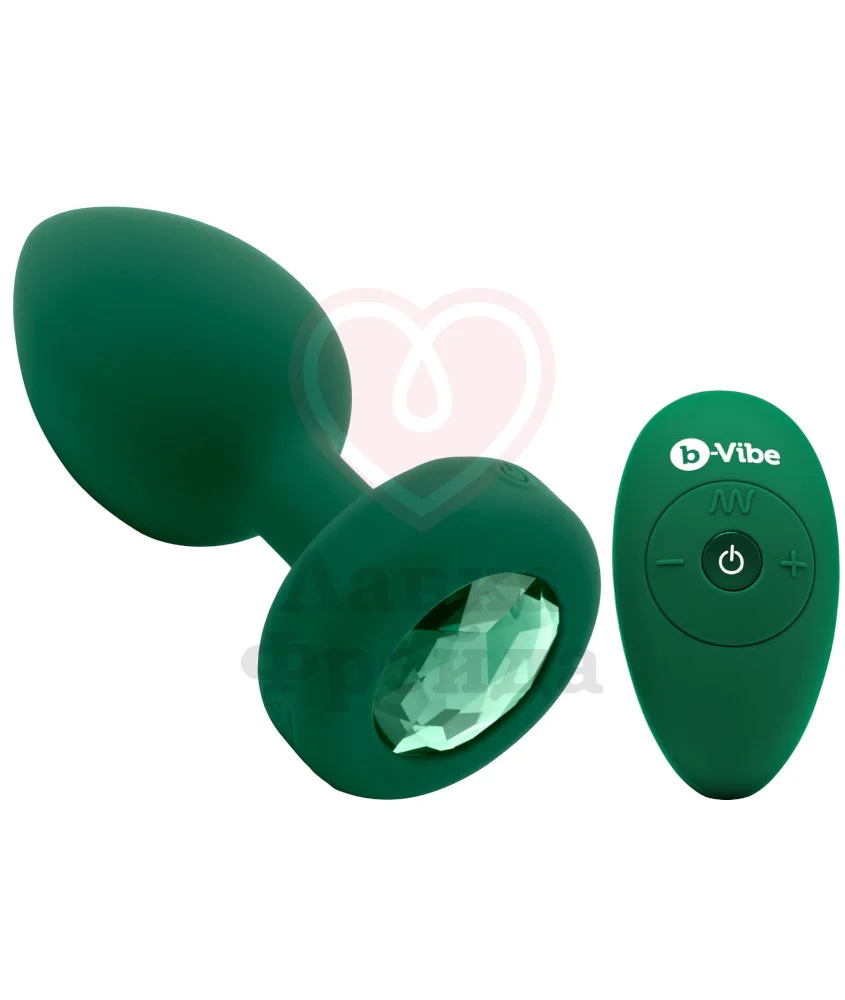 Анальная пробка b-Vibe Vibrating Jewel Plug украшена кристаллом и имеет управление от пульта для максимального удобства. Игрушка идет в классическом размере M/L, подходящем для более опытных пользователей: общей длиной 10,3 см, длиной проникновения 9,3 см и максимальным диаметром 3,9 см.